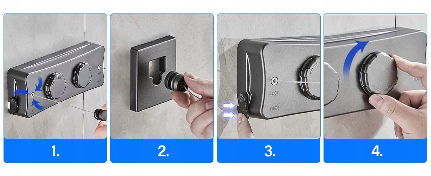 - ✔ Существует два метода установки на выбор: вы можете использовать клей для установки на гладких пластинах, мрамор, стекло, металл, металл и металлы других стен, а также установить, бурение на окрашенных стенах, обои, гипсовые стены и т. Д. двор и т. Д.