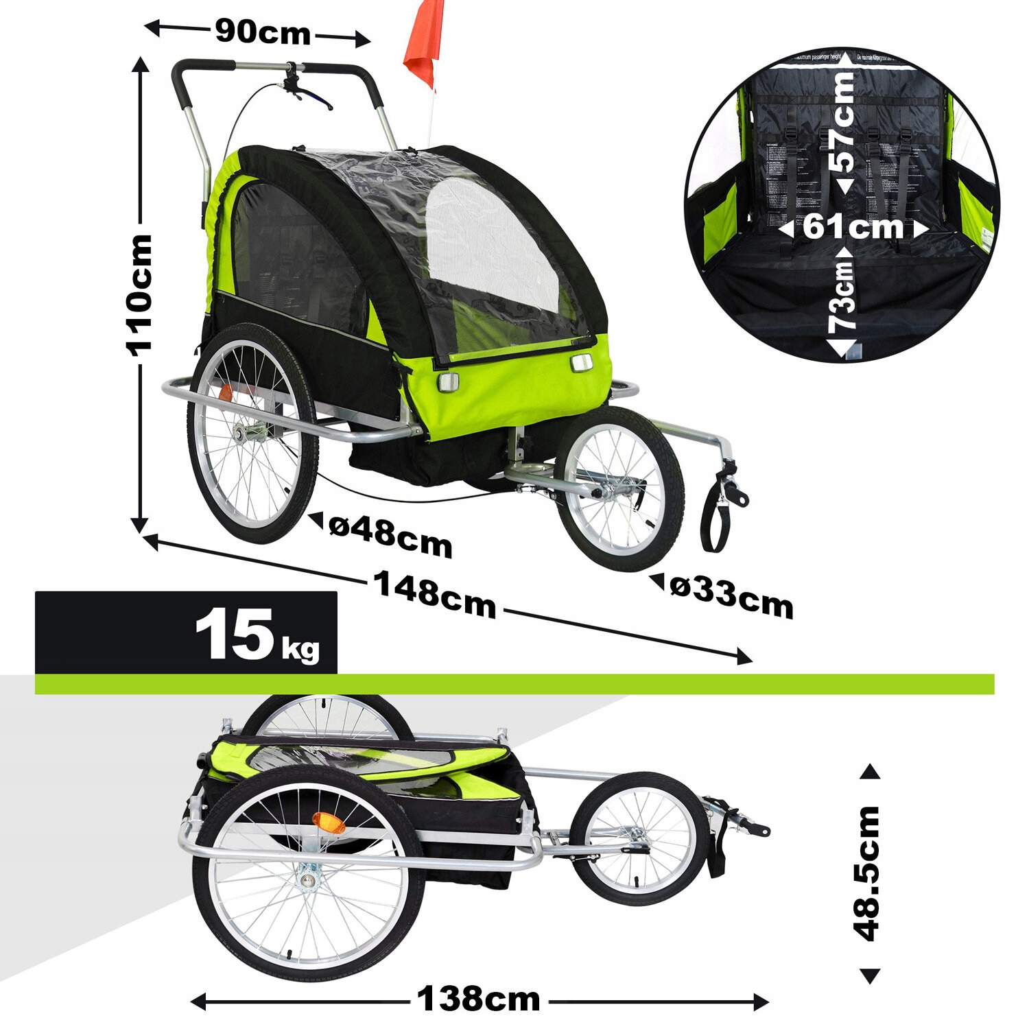 ZIELONA PRZYCZEPKA ROWEROWA / JOGGER 2w1 SKŁADANA PRZYCZEPA DO ROWERU
