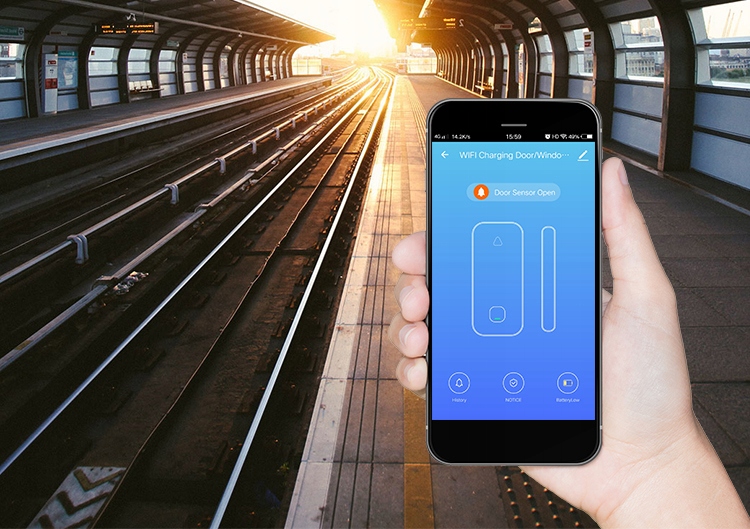 В приложении пользователь видит текущий статус датчика и получает уведомления о его нарушении.