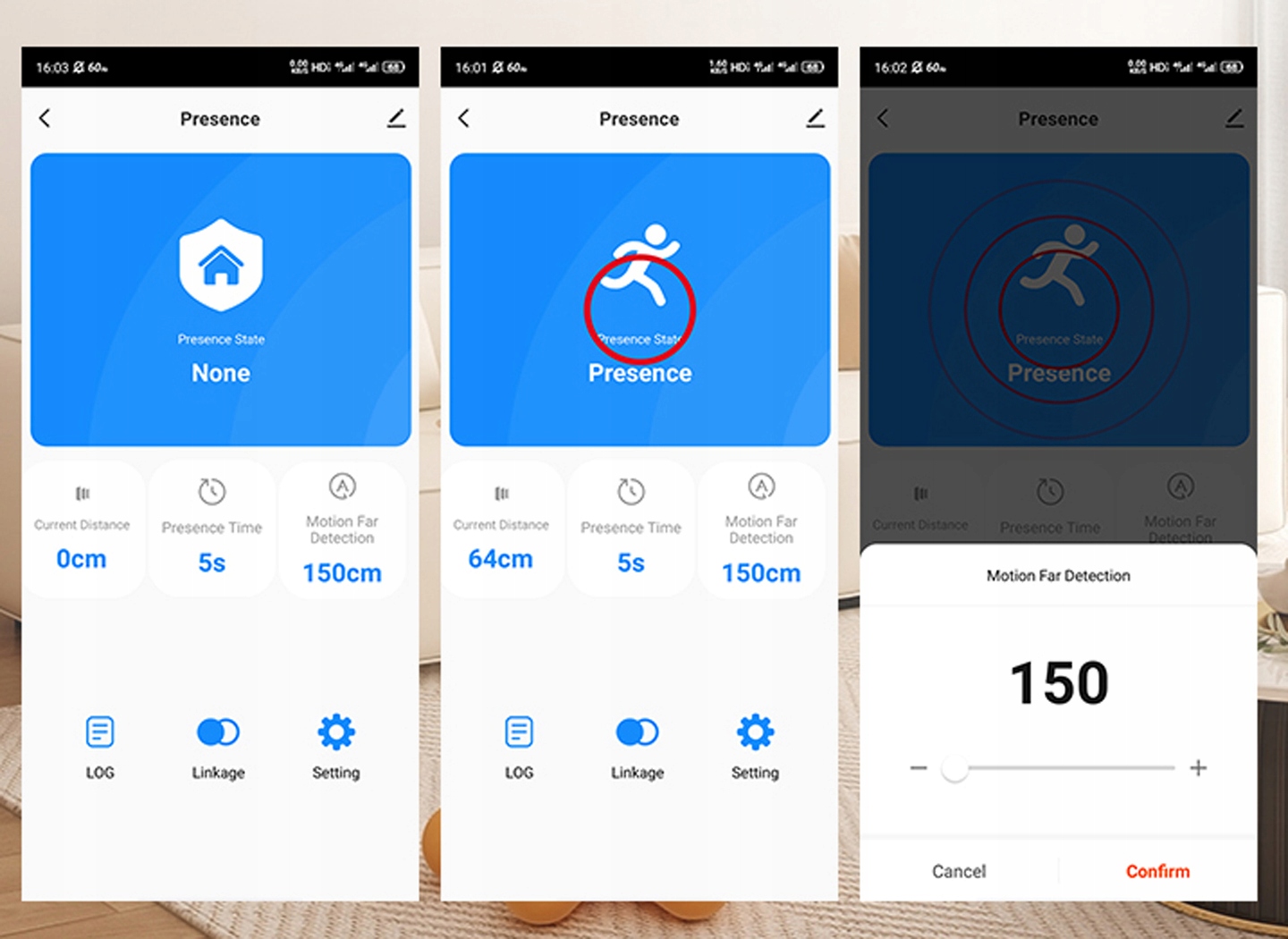 - Настраиваемая дальность обнаружения присутствия, максимум 6 м.