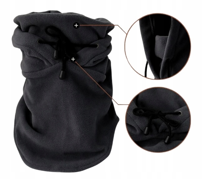 - Многофункциональный и ветрозащитный: можно использовать как: утеплитель для шеи, шарф, маску или шапку.