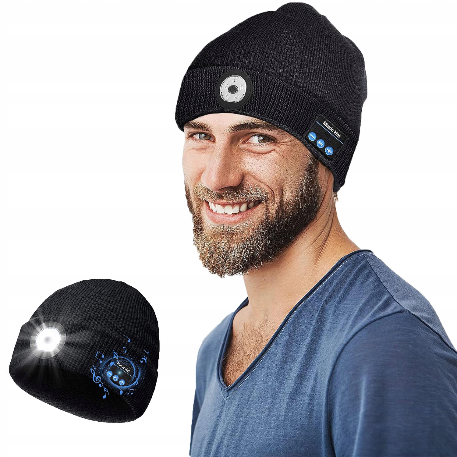 Bluetooth вязаная шляпа светодиодная светодиодная лампа USB Теплый мод Комфортный Музыка