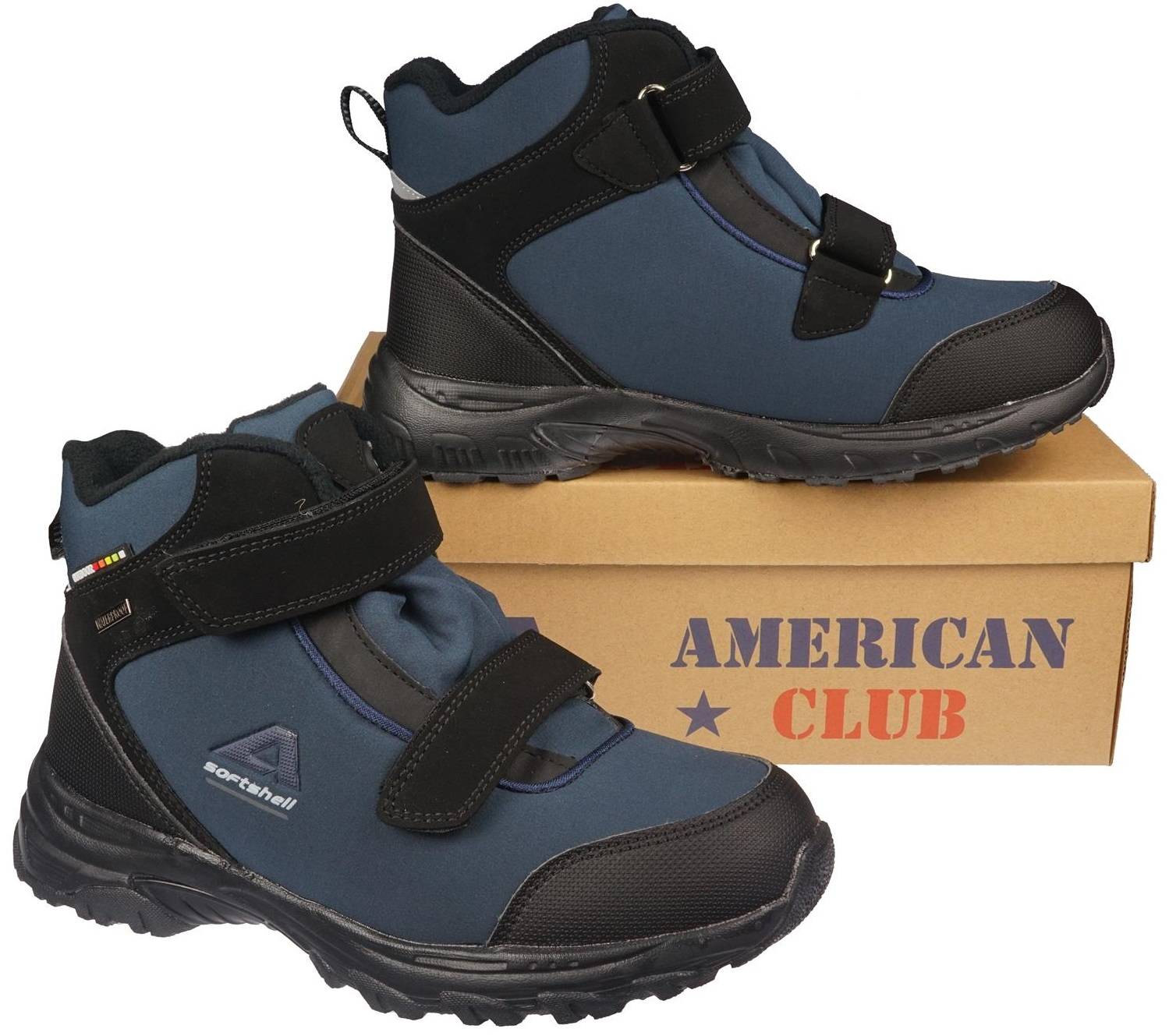 Зимние туфли American Club темно-синего цвета. Обувь прочная, удобная и выглядит красиво. Обувь изготовлена из высококачественных материалов и имеет верх из Softshell, защищающий от низких температур, ветра, дождя и снега. Дополнительно имеется водонепроницаемая мембрана Tripletex. Толстая подошва с протектором обеспечивает хорошее сцепление с землей и комфорт использования. Внутренняя часть обуви утеплена, что обеспечивает нужную температуру даже в зимние дни. Дополнительными преимуществами являются липучки, благодаря которым обувь идеально прилегает к ноге и облегчает и ускоряет ее надевание. Подводя итог, можно сказать, что обувь идеально подходит для осенних и зимних дней, для повседневного использования или для горных экспедиций.