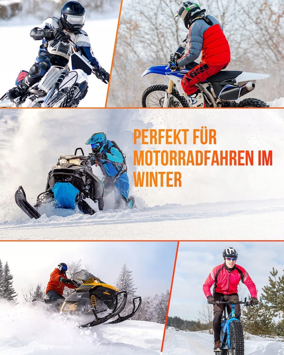 Идеально подходят для использования на открытом воздухе. Наши мотоциклетные перчатки с подогревом водонепроницаемы и дышащие, их можно использовать в экстремальных погодных условиях, таких как дождь и снег. Идеально подходит для занятий спортом на открытом воздухе, таких как езда на велосипеде, катание на лыжах, мотоцикле, бег, рыбалка, охота, верховая езда, сноуборд, зимний кемпинг и т. д.
