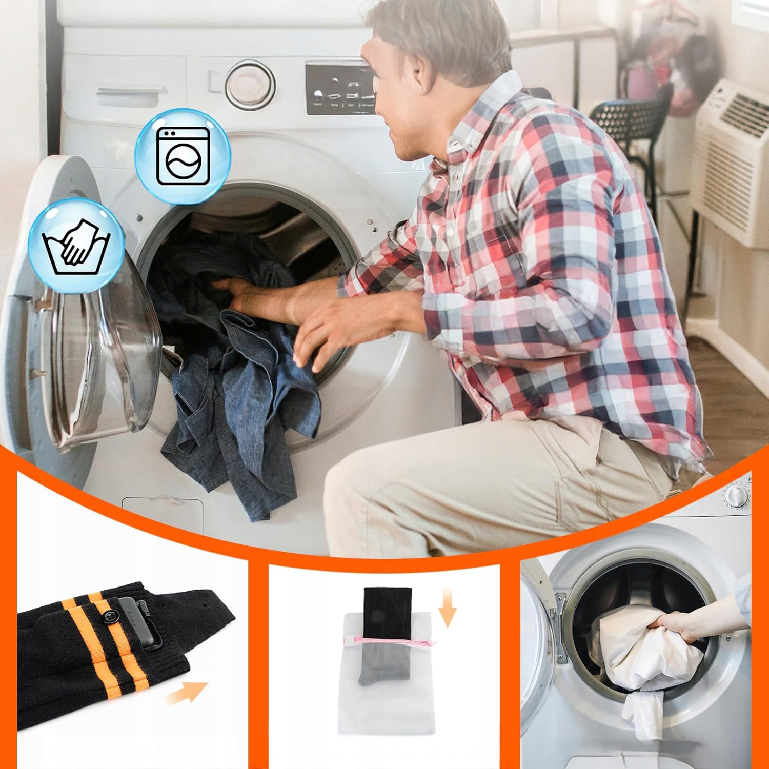 Эти носки на батарейках можно стирать в машине. Примечание. Перед стиркой всегда извлекайте батареи и вставляйте кабель в батарейный отсек (примечание: батареи нельзя мыть).