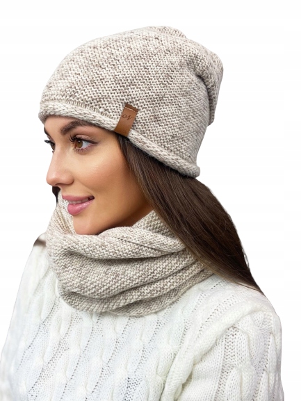 ЗИМОВИЙ КОМПЛЕКТ ШАПКА + КАМНІ ТУБА МЕЛАНЖ БЕЖЕВИЙ