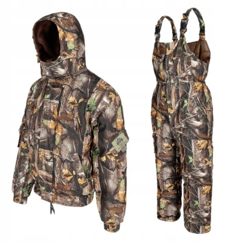 Набор изготовлен из МЕМБРАННОГО материала и изолирован полиэфирной ватой. Мембранный материал обладает тем свойством, что влага проникает только в одном направлении (наружу) и вы всегда чувствуете себя сухо и тепло. Защищает от мороза до -25 градусов.