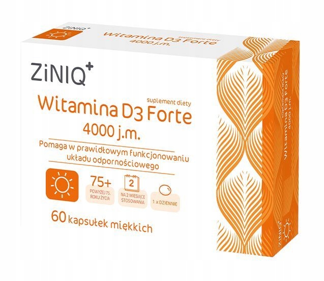 Ziniq Vitamin D3 Forte 4000 МЕ пищевых добавок для взрослых. h1> Ziniq+ витамин D3 Forte 4000 МЕ. Это пищевая добавка в виде мягких капсул, содержащих 4000 МЕ в одной капсуле. Витамин D подвешен в масле у Крокош Барвиерки. H2> витамин D помогает в правильном функционировании иммунной системы и в правильном поглощении кальция и фосфора. H2>