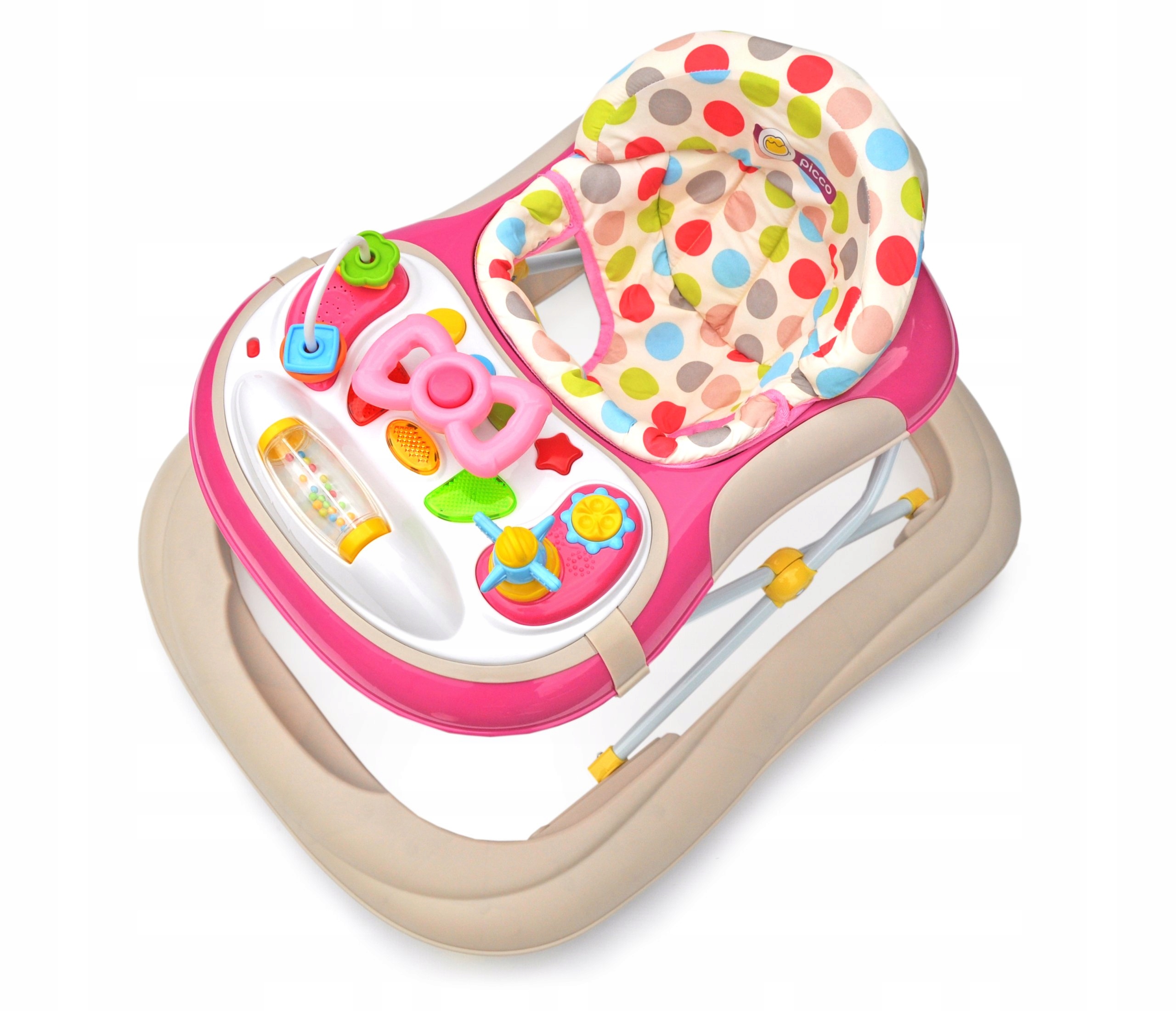 ... для вашего ребенка в свежих, сочных цветах и с мягким и удобным сиденьем. Мультимедийный рабочий стол, оснащенный игрушками, побуждающими детей к активности, огоньками, кнопками, фигурами, погремушкой. и b>руль с звуковым сигналом развивают способности детей и делают их время более приятным.