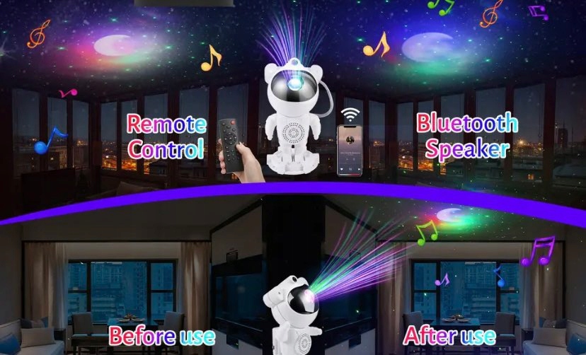 ЗІРКИ НЕБО ПРОЕКТОР LED НІЧНИК АСТРОНАВТ ДЛЯ ДІТЕЙ КОЛОНКА ПУЛЬТ