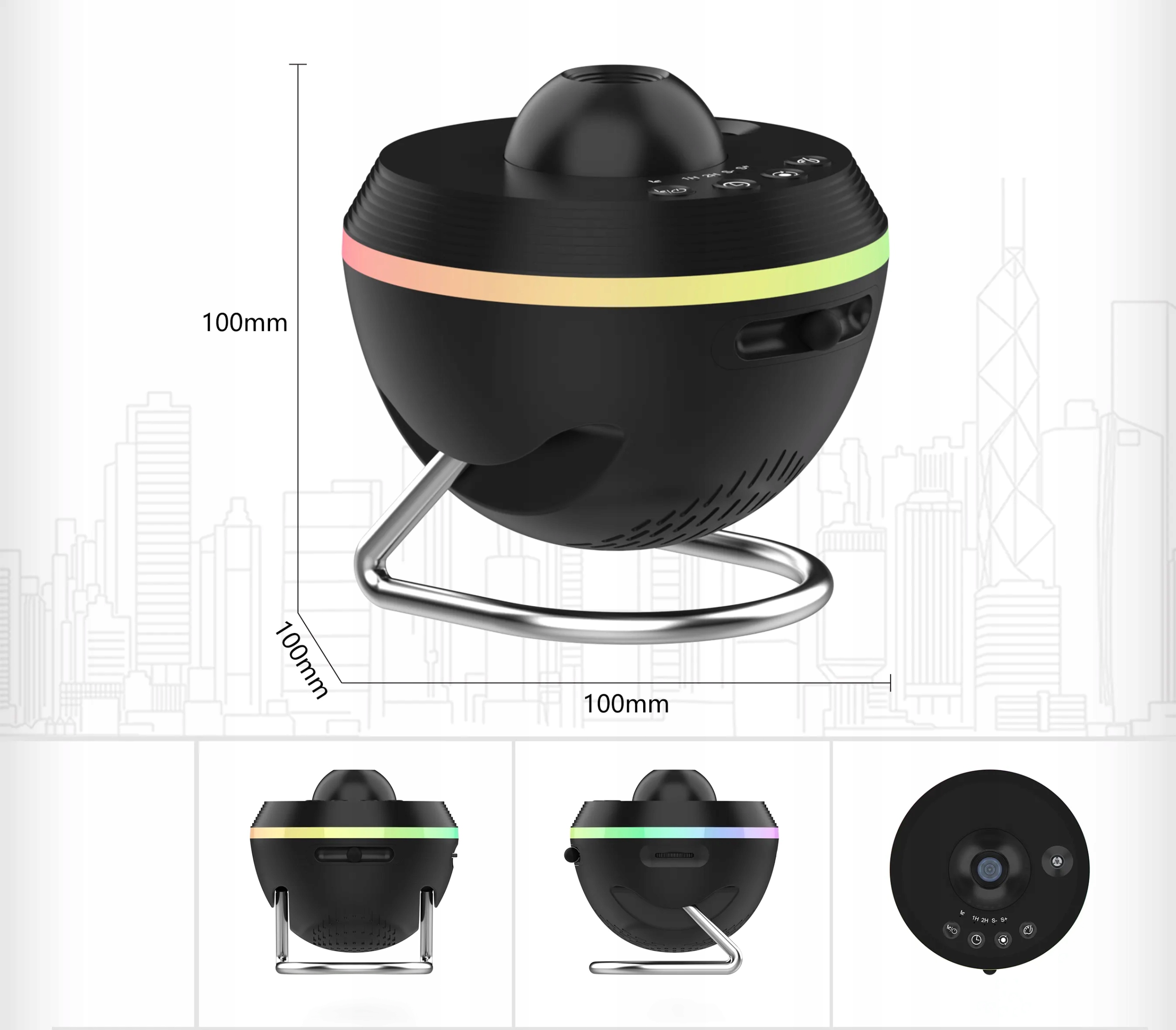 На представленной картинке мы видим современный звездный проектор , который объединяет компактный размер и элегантный дизайн . Благодаря размерам 100 мм x 100 мм x 100 мм это маленькое и легко носить, что делает его отличным выбором для каждой спальни, гостиной или детской комнаты.