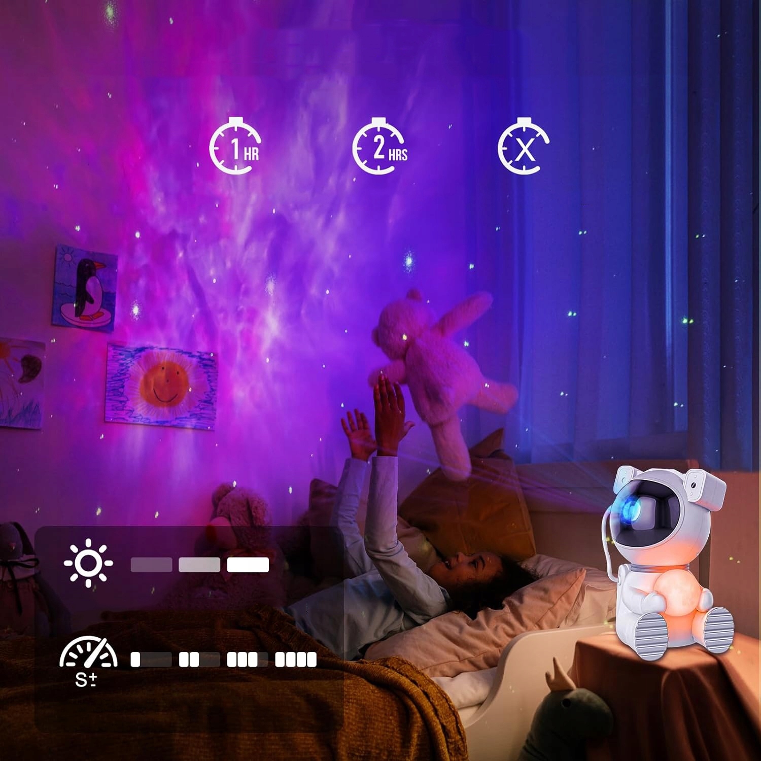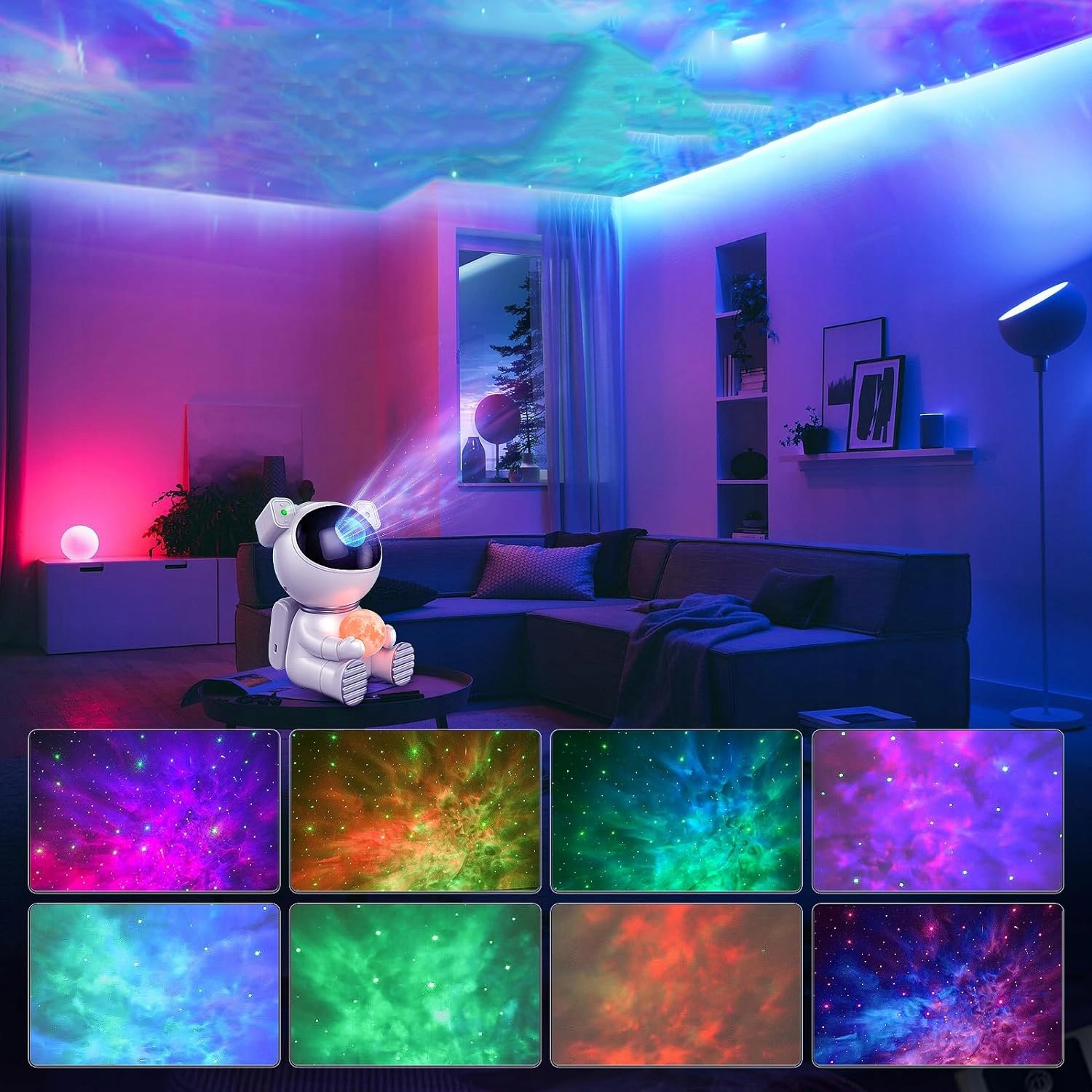 ⭐⭐ Проектор светодиодных звезд: Проектор астронавтов делает интерьер красочным, с изменяющимися туманными и реалистичными мечтами, молочный путь в свете HD Stars и плохих мерцающих звезд, а также комбинации нескольких цветов, напоминающих самые приятные унылы под звезды. Он может быть переключен с помощью пульта дистанционного управления или кнопок.