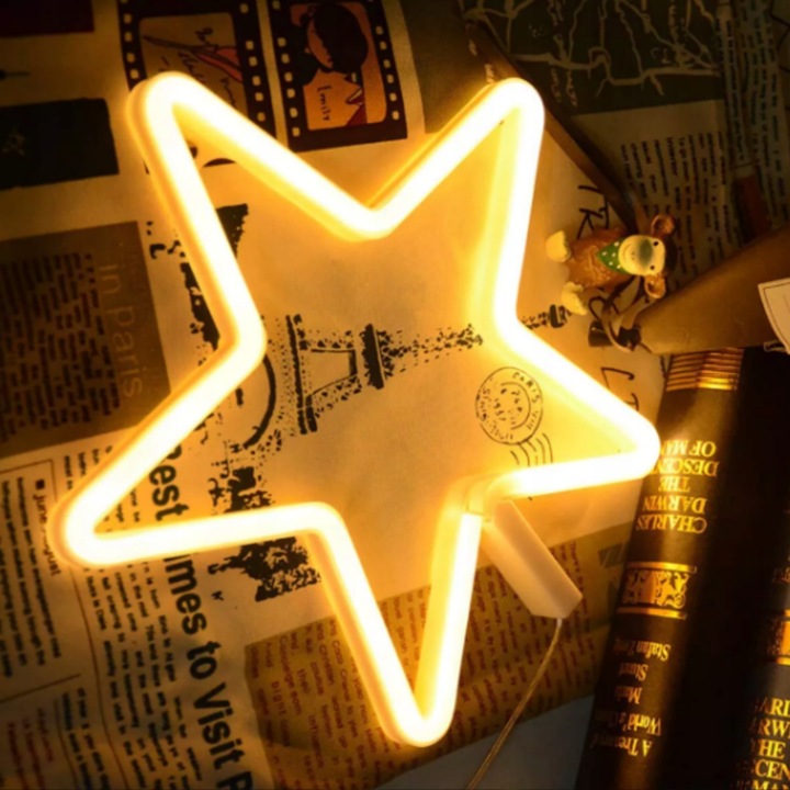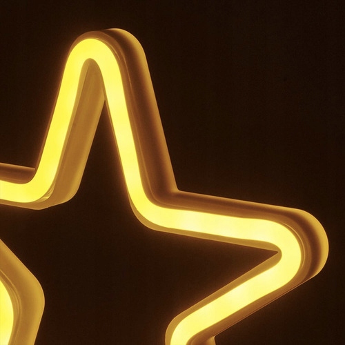✅Неоновая вывеска доступна в форме рождественской звезды приятного желтого цвета. Устройство изготовлено из прочного белого пластика.