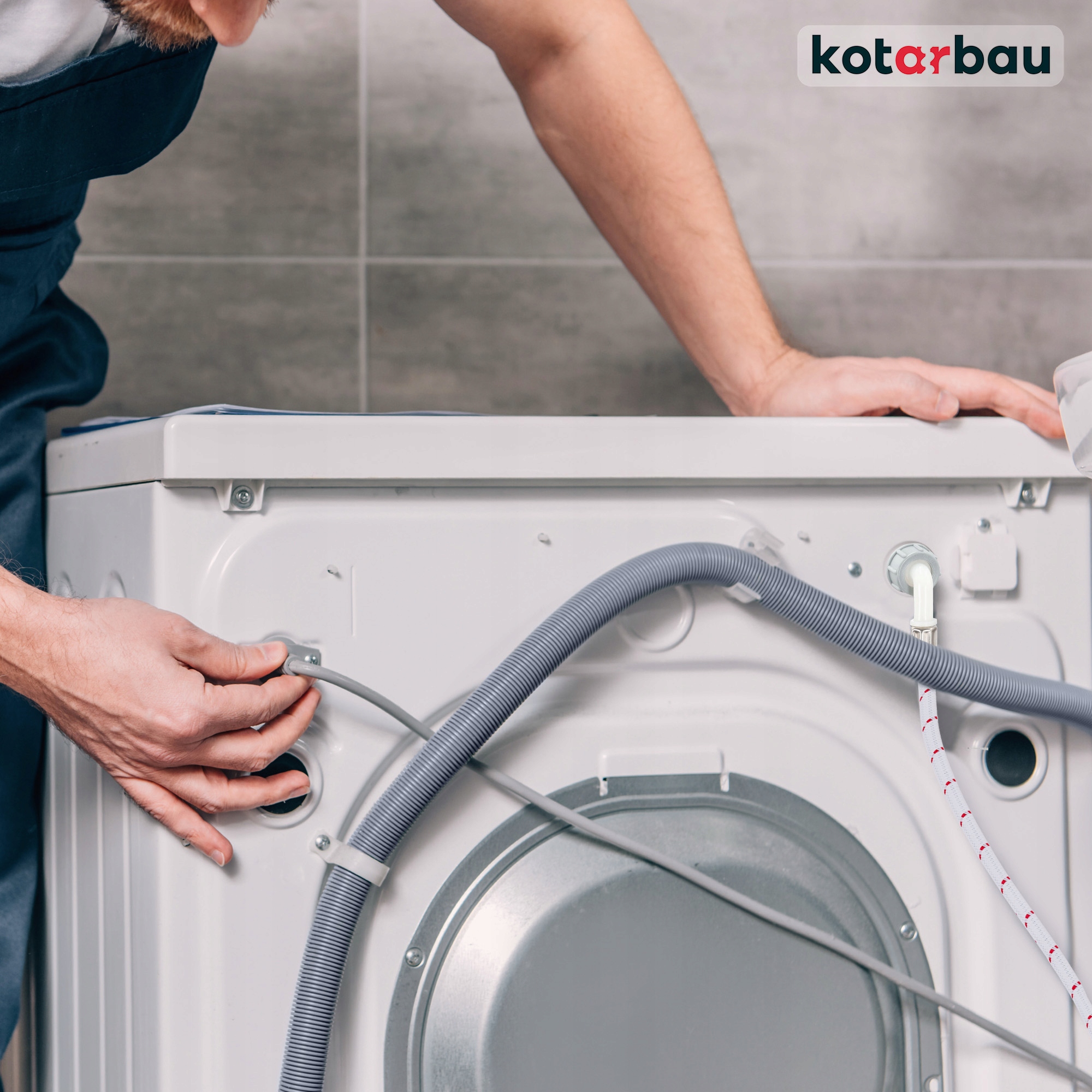 - Благодаря сливному шлангу вода из стиральной машины направлена непосредственно на назначенный отток, который сводит к минимуму риск затопления пола или других поверхностей. Безопасное соединение стиральной машины даже в трудных местах.