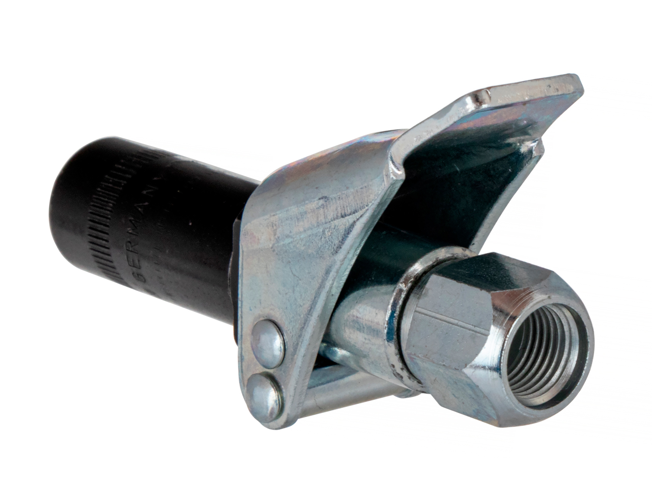 Рычажный наконечник шприца для смазки позволяет быстро и легко смазывать детали во время работ по техническому обслуживанию.