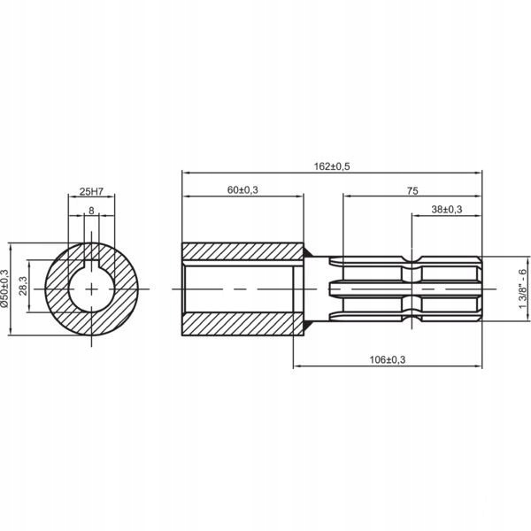 Уменьшение вала вом с Fi-25мм внутр. для 1 3/8 " 6