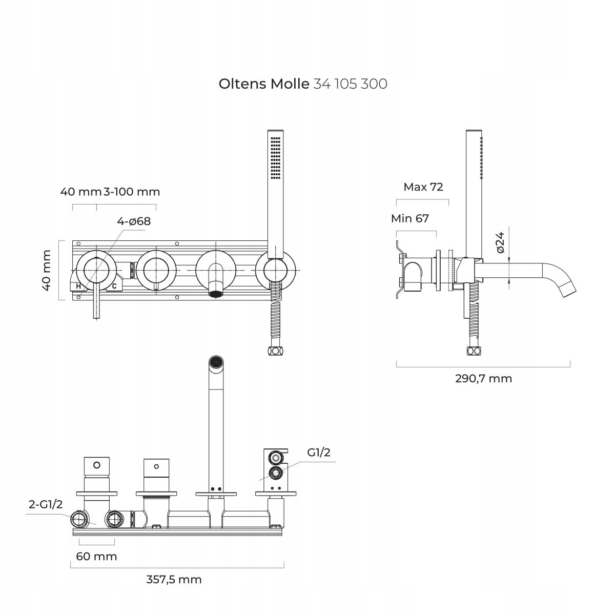 ЗМІН ПРИХОВАНОГО ДЛЯ ВАННИ, MAT BLACK OLTENS