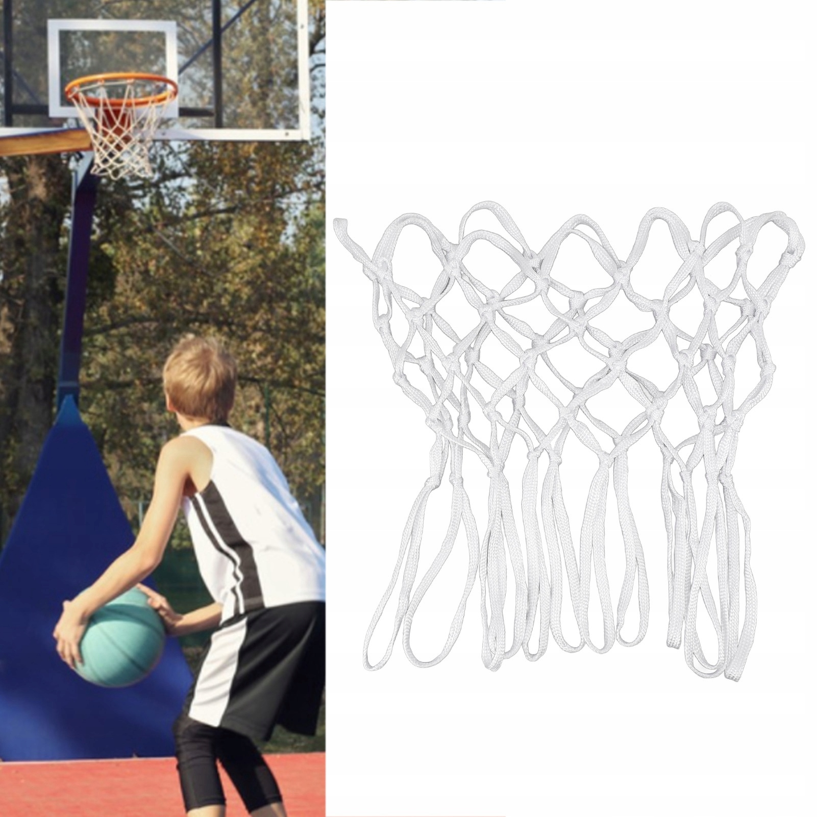 4. Нейлоновая баскетбольная сетка: допускается сильный солнечный свет и штормы, подходит для большинства стандартных баскетбольных колец в помещении и на открытом воздухе. Очень легко установить и заменить стандартные баскетбольные кольца.