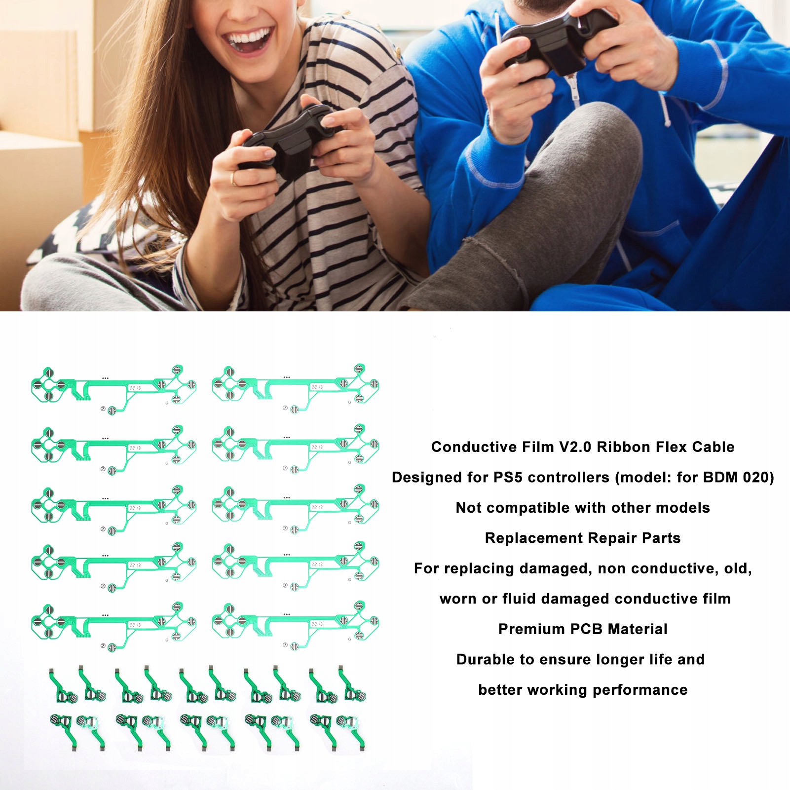 1. Совместимая модель: гибкий ленточный кабель V2.0 с проводящей фольгой, предназначенный для контроллеров PS5 (модель: для BDM 020), несовместим с другими моделями.