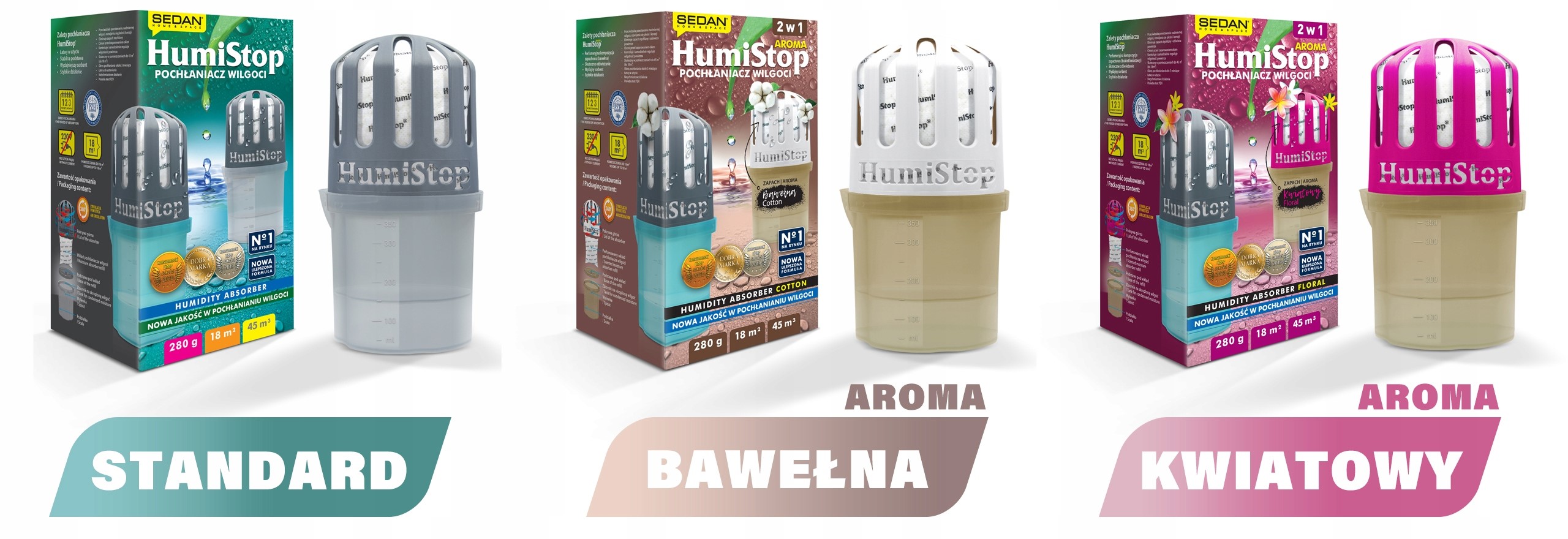 Всегда сухо, всегда свеже, всегда эффективно, всегда.... Humistop. Важно подобрать модель абсорбера под размер помещения. В предложении имеются поглотители различных цветов и ароматов, а также предназначенные для конкретной площади помещения. Стандартный поглотитель HumiStop рассчитан на приблизительно 18 м2, а версия HumSitop MAXI будет собирать влагу с поверхностей площадью до приблизительно 30 м2.