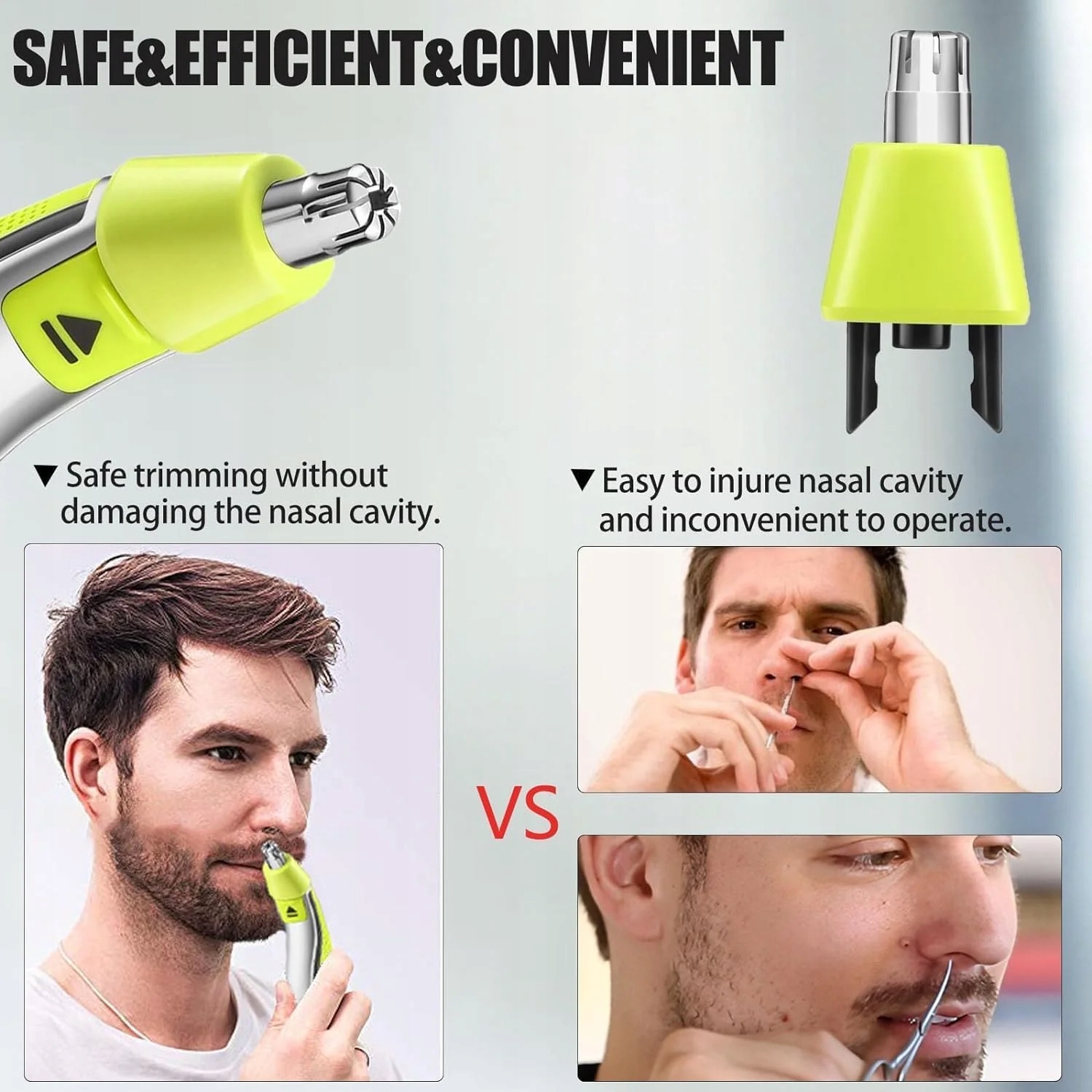 Этот триммер для волос носа оснащен внутренней вращающейся лезвий с двойным лезвием, которая вращается на 360 °, чтобы идеально адаптироваться к контурам носа и ушей. Это обеспечивает безопасное и легкое удаление волос без боли или неприятного тяги.
