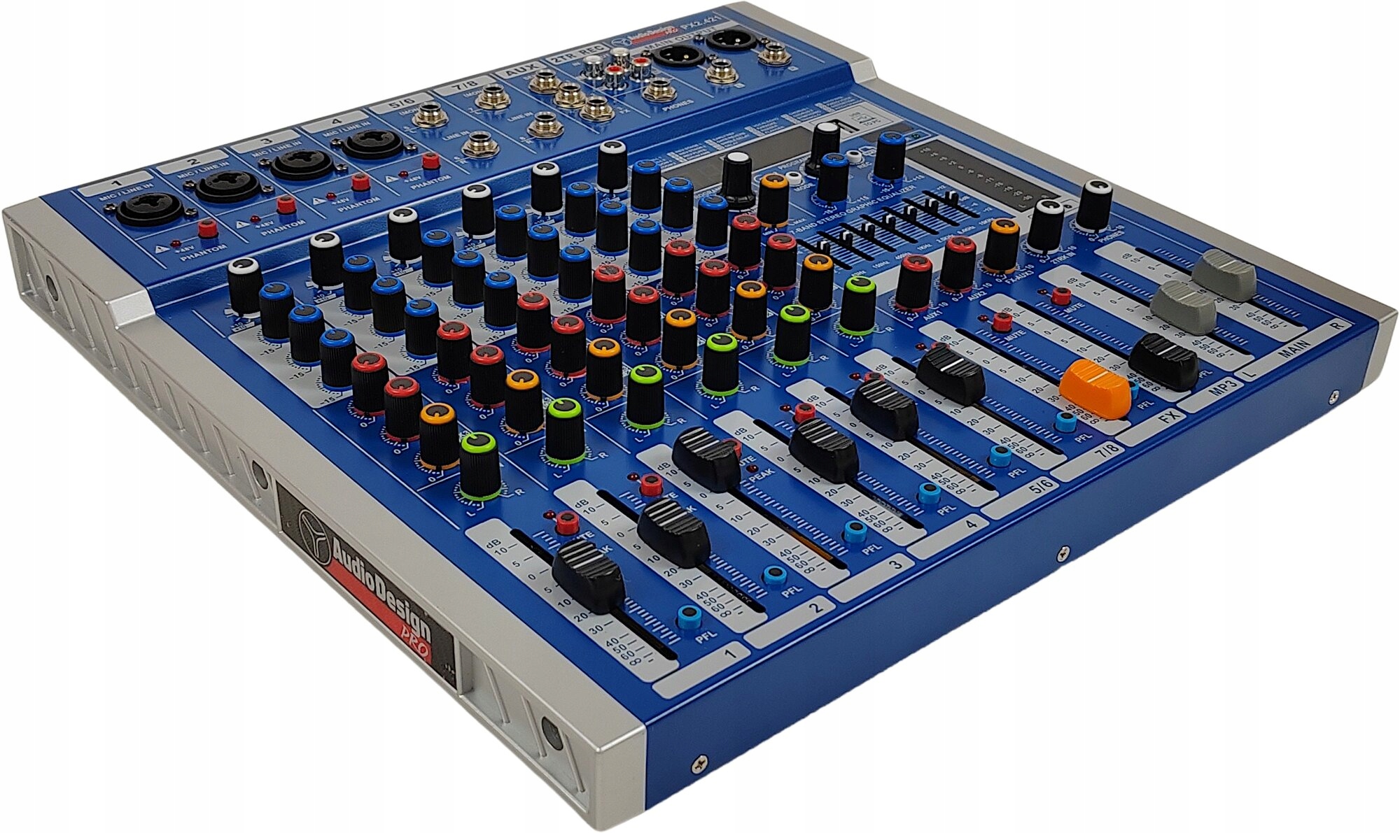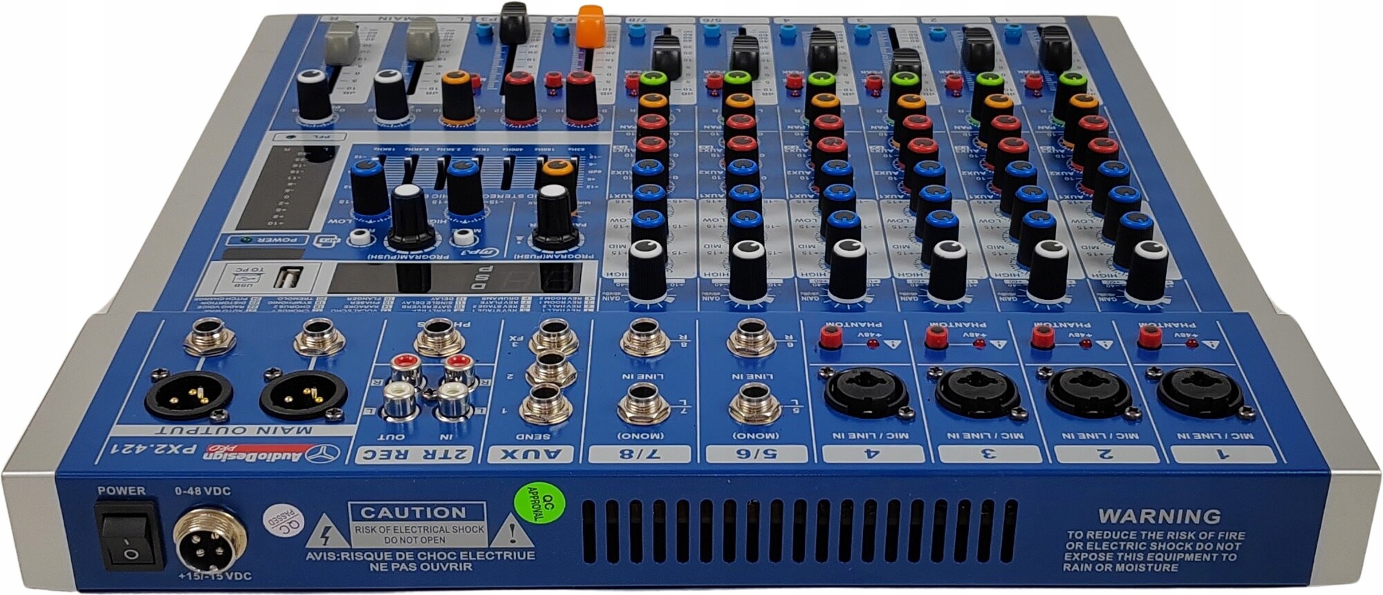 Миксер, 8 каналов, ползунки, встроенный MP3/WAV Player и USB-дисковой регистратор, Bluetooth, 4x Mono, 2x стерео, фантома с вариантом переключения на моно входы, 24 DSP-эффекты, 7-флексный графический корректор, 3-кратный aux, наушники в наушниках, Dimensions 349 x 349 x 50 мм, веса.