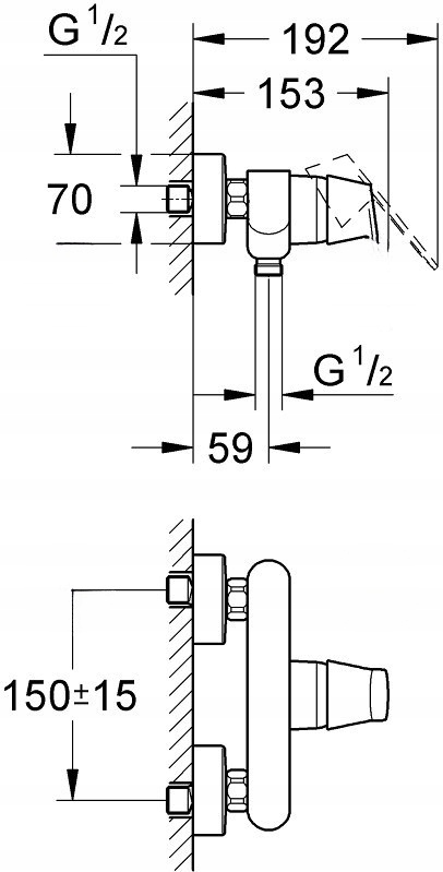 Смеситель для душа Grohe Eurosmart Cosmopolitan, однорычажный, настенный, 2 отверстия