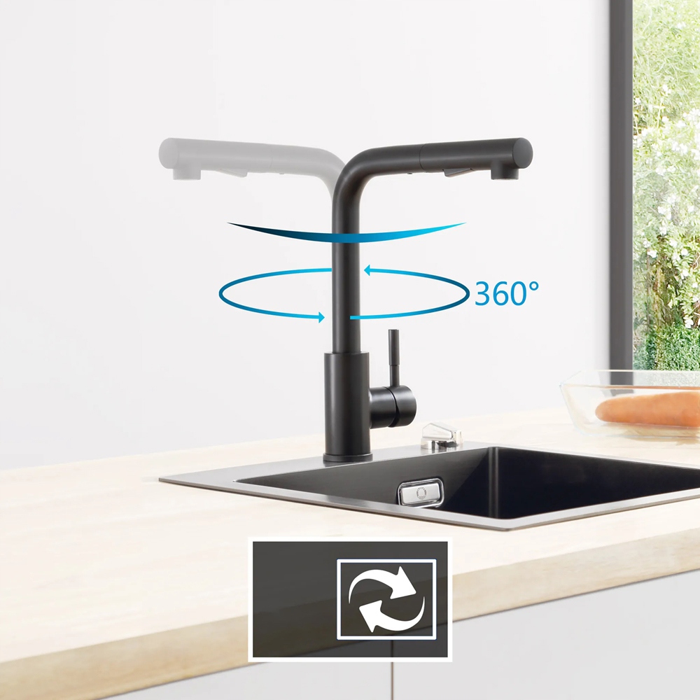 💦 Выдвижной слив для воды, очень гибкий. С аэратором, который можно использовать для двух разных способов распыления: струи струи и узкой струи воды.