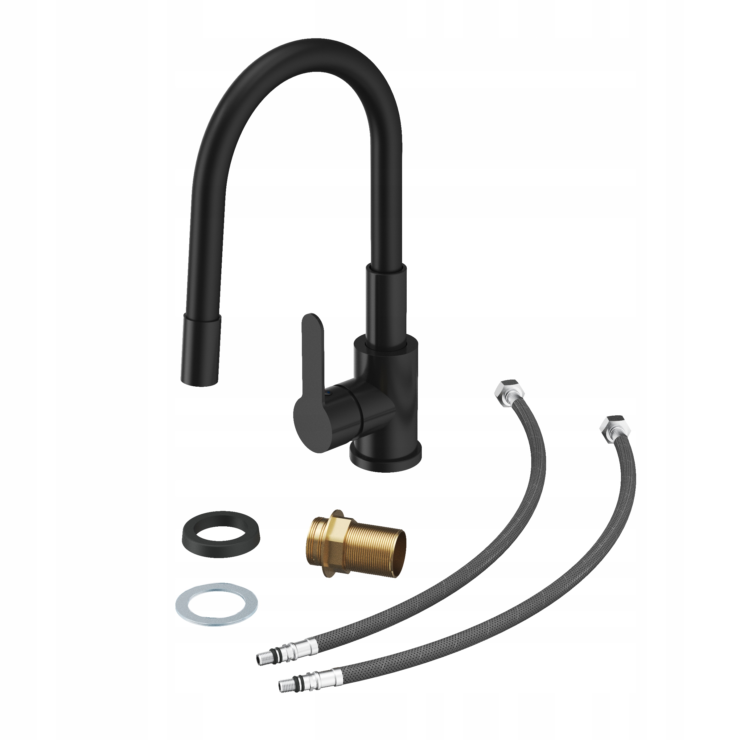 Смеситель для кухни с гибким изливом, черный GRADO PLUS, вращающийся аэратор
