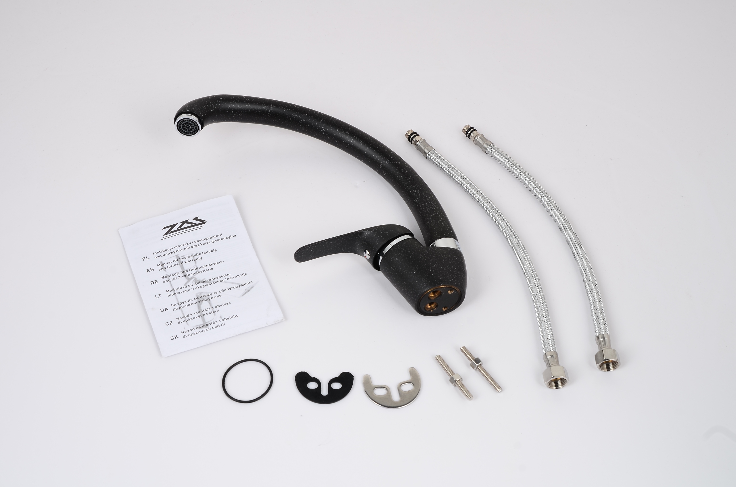 - Тип смесителя: кухонный, для раковины, стоячий, высокий, поворотный излив.