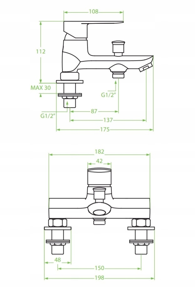 Смеситель для ванны / Ванны с 2 отверстиями + душ 3F
