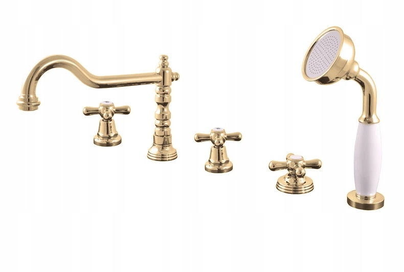 Glider - Смеситель для ванны RAV на 5 отверстий MORAVA RETRO - MK164.0PZ Цвет: Золотой глянец, Соединительные шланги - резьба: 3/8"