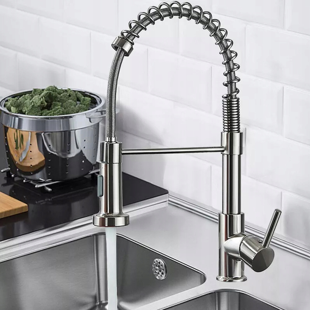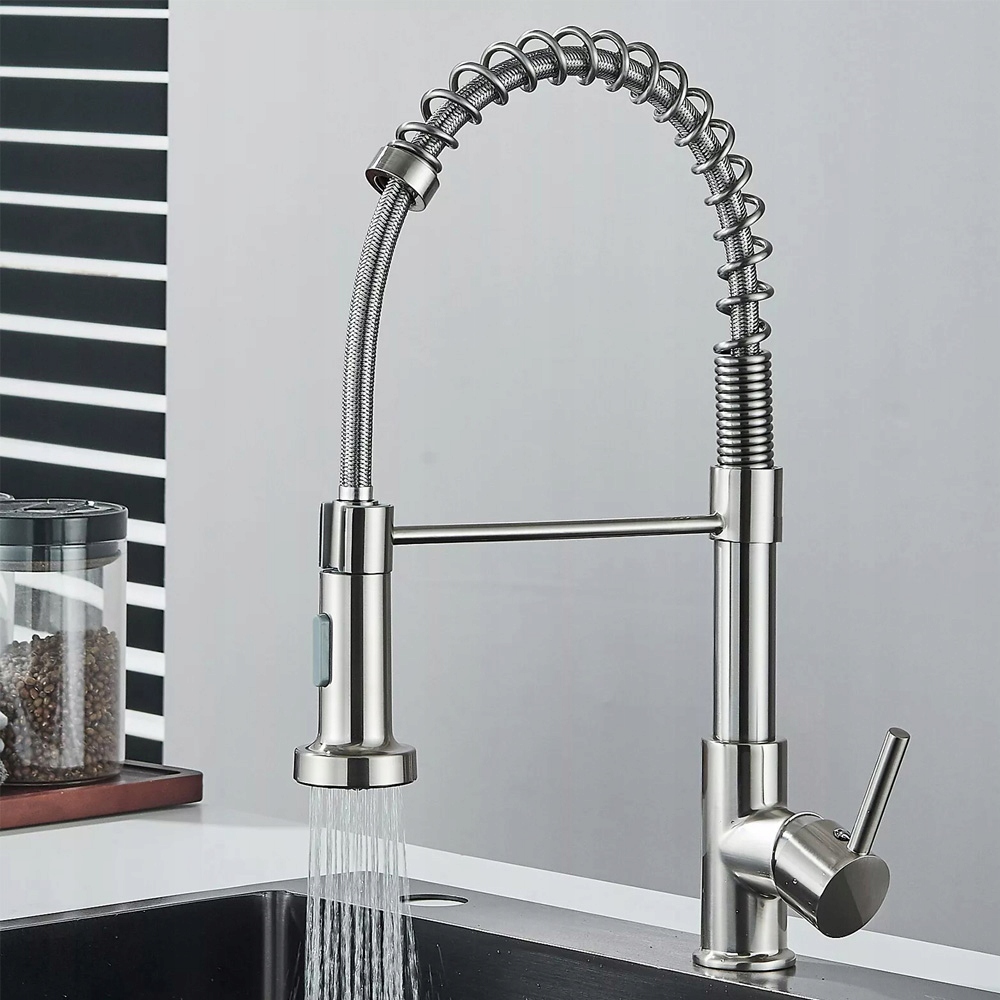 Регулировка крана для раковины, форсунка для наполнения водой, спрей для полоскания, одна ручка для удобного управления температурой воды и объемом потока. Смешивание горячей и холодной воды, обеспечивающее стабильное давление воды, облегчает очистку. Поворотный кухонный смеситель с поворотом на 360 градусов и простым в использовании распылителем.