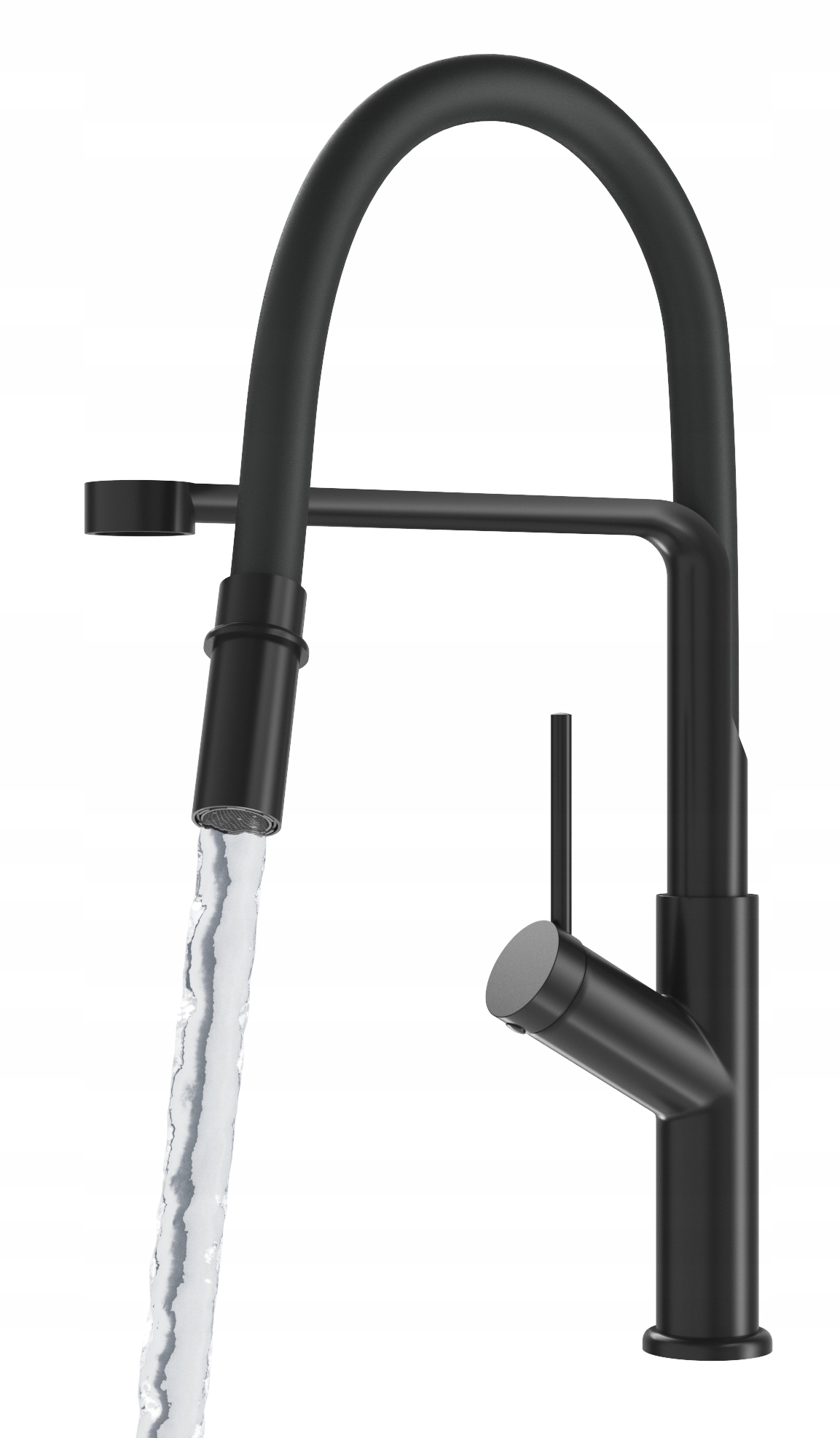 ЗМІШУВАЧ НА КУХНІ З ГНУЧКИМ ВИЛИВОМ, ЧОРНИЙ, СТРІЧКА ДЛЯ МИЙКИ VASTO