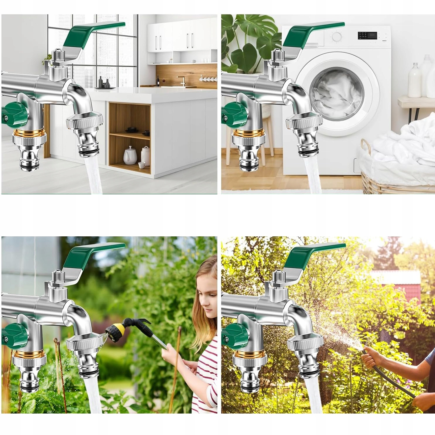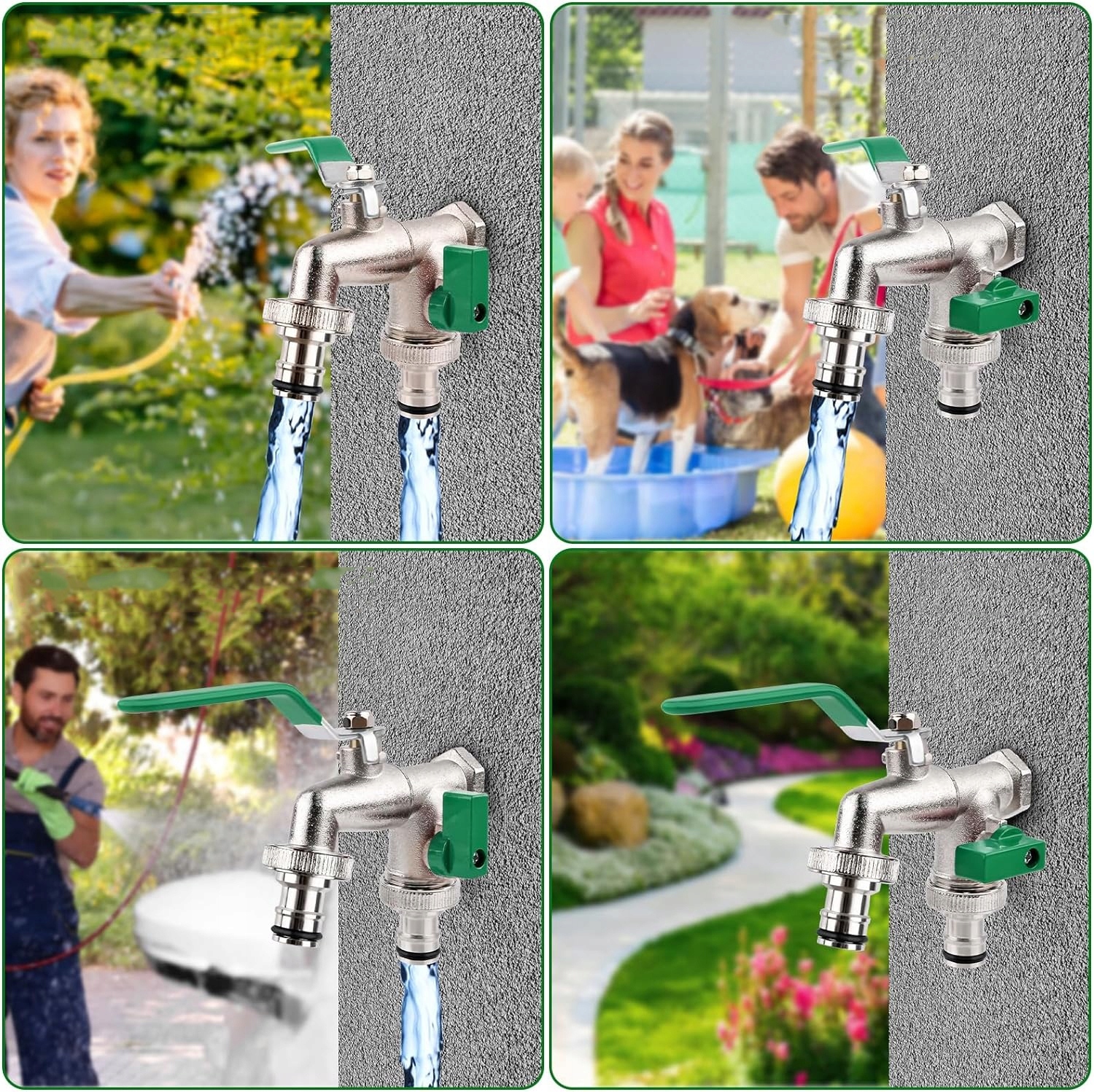 💮【Применение】 Высококачественный смеситель с двойным выпуском, подходит для сада, промышленности и дома, орошения, стиральной машины, автомойки, садового шланга, лейка, дождевая бочка и т. д. Можно использовать местно. Внешний вид нашего смесителя не только обеспечивает безопасность на открытом воздухе! Он также идеально подходит для подключения стиральных машин или чайников.
