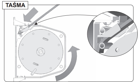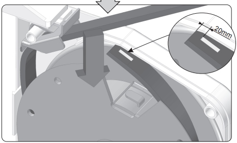 5⃣. В ленте сделайте отверстие или зазор на расстоянии около 20 мм от края ленты. Нанесите конец ленты на клип, выступающий из рельефной катушки