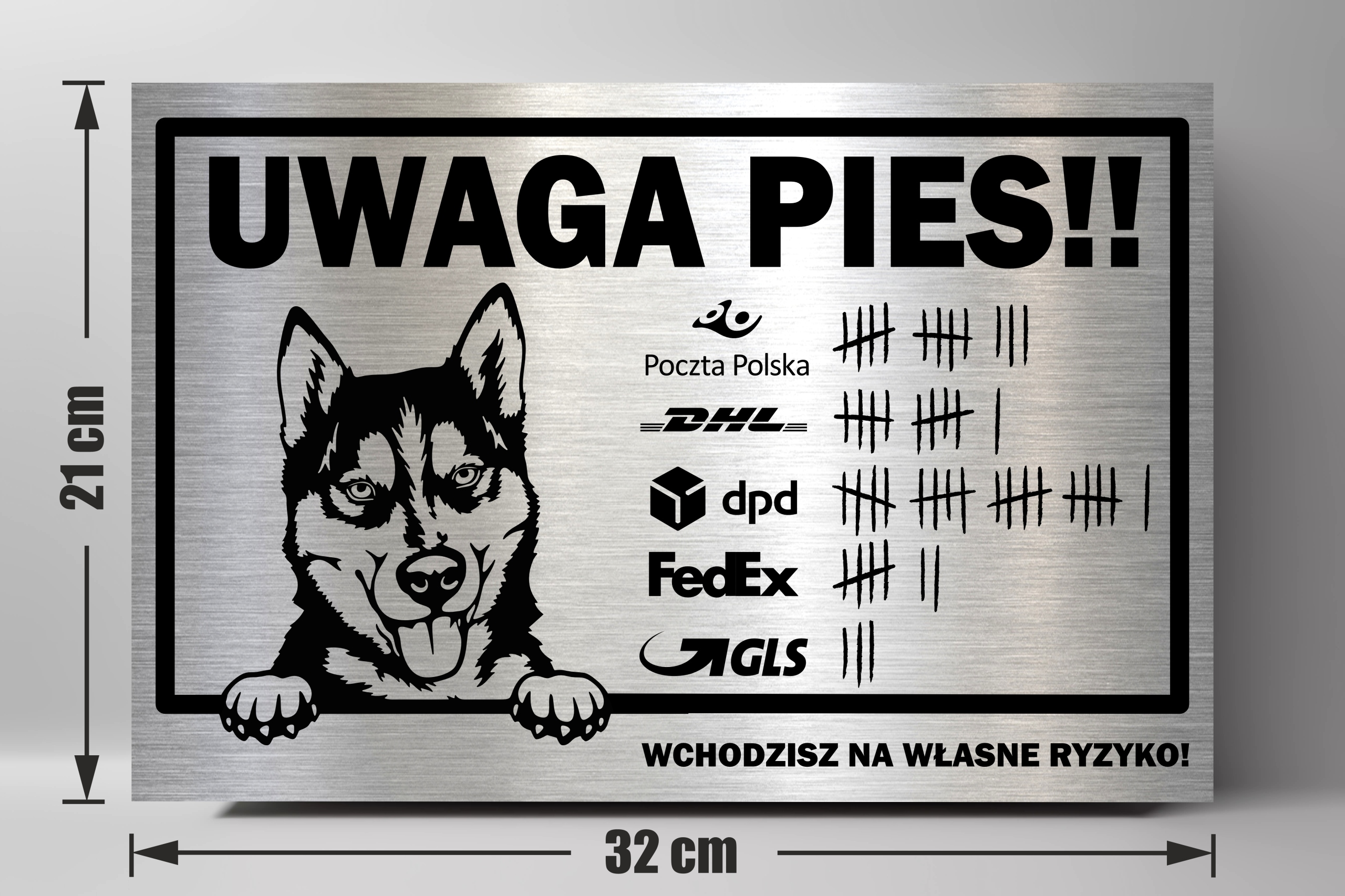 Просматривая «Табличка ВНИМАНИЕ СОБАКА СМОТРИТ СИБИРСКОГО ХАСКИ Нержавеющая сталь УФ ПЕЧАТЬ», вы можете быть уверены, что данный товар из каталога «Зоологические гаджеты» будет доставлен из Польши и проверен на целостность. В цене товара, указанной на сайте, учтена доставка из Польши. Внимание!!! Товары для Евросоюза, согласно законодательству стран Евросоюза, могут отличаться упаковкой или наполнением.