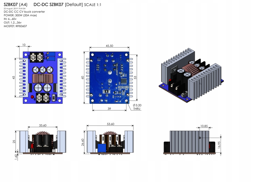SZBK07 понижающий преобразователь напряжения максимальной мощностью 300Вт.