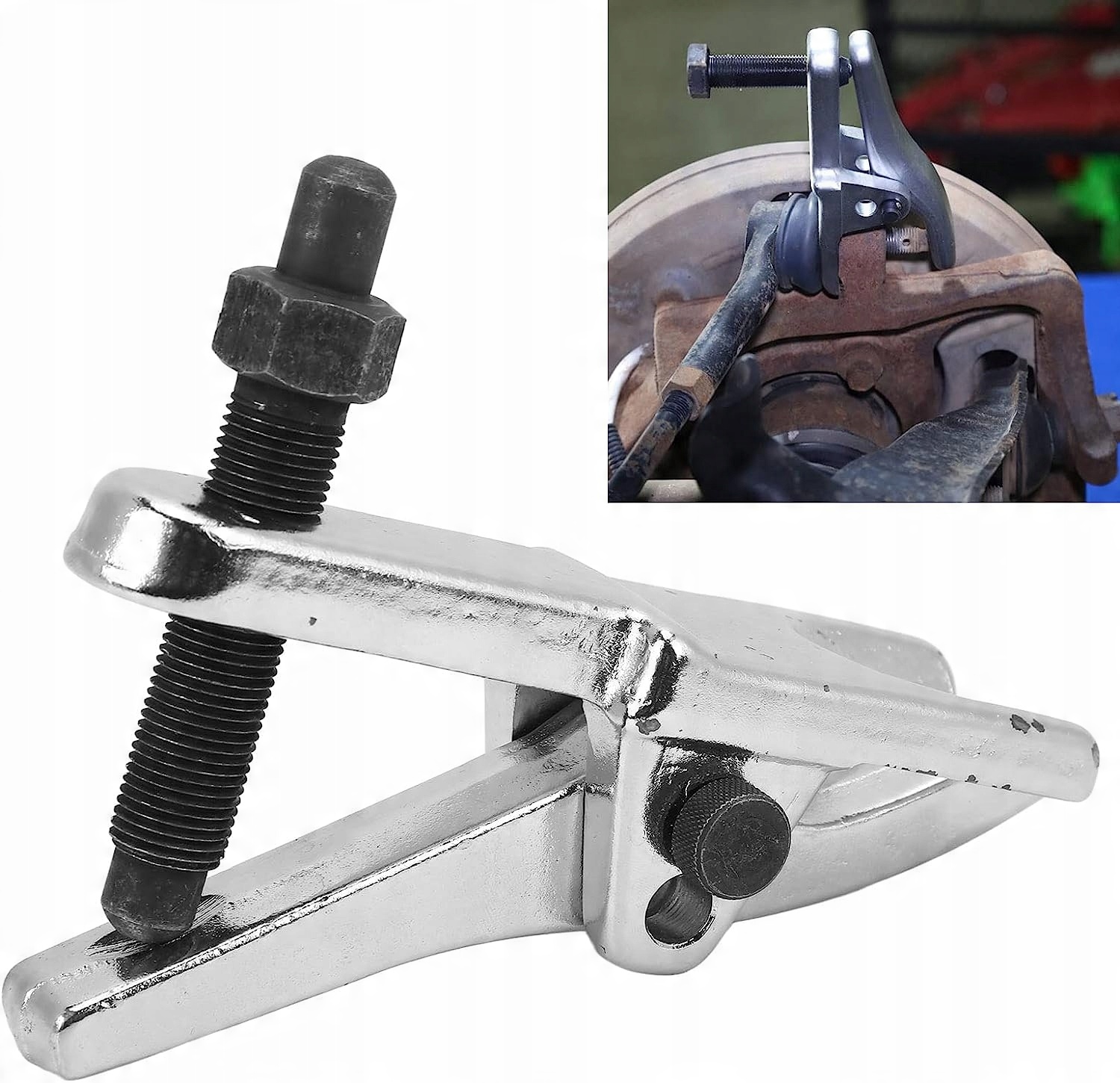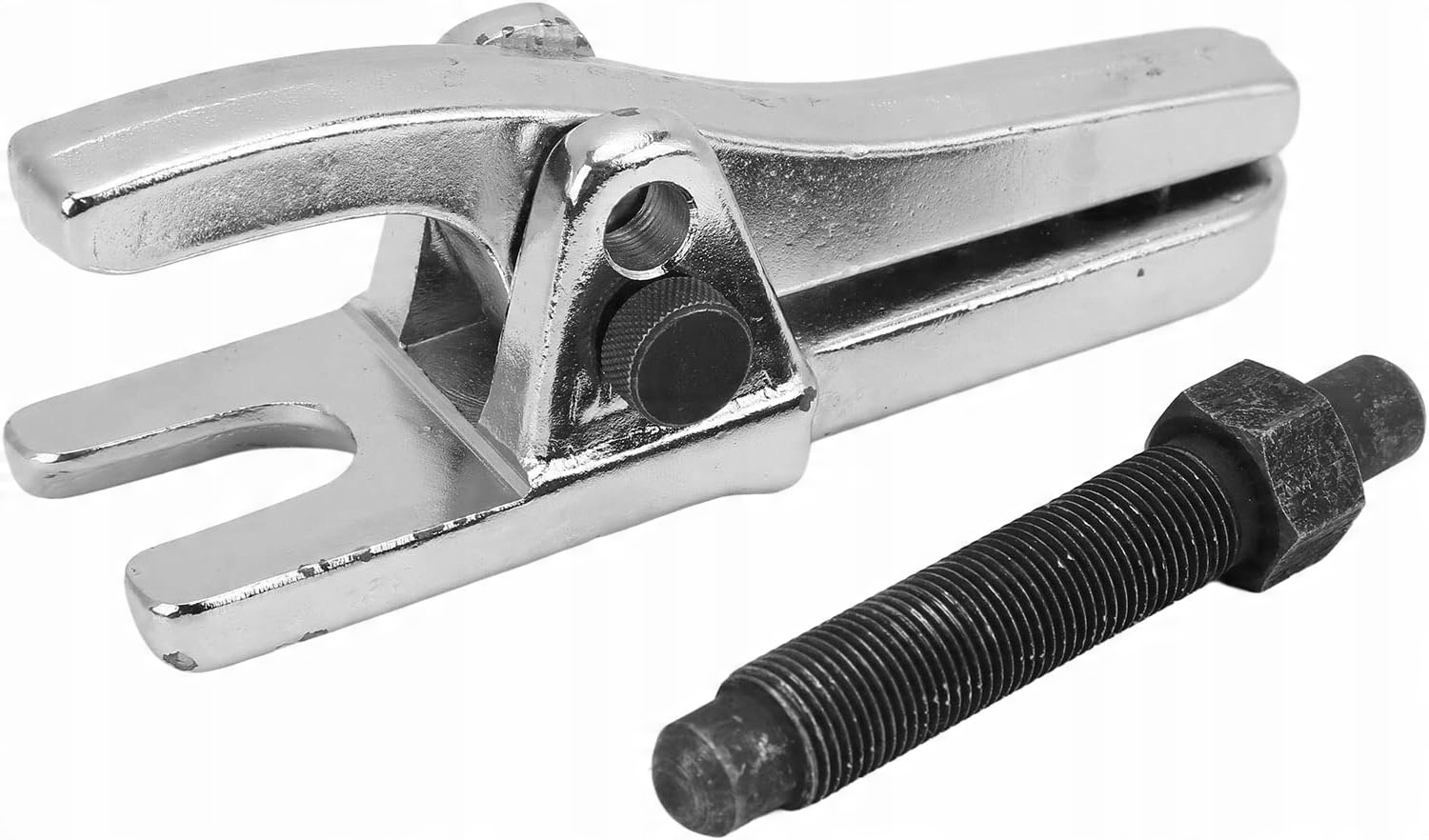 Представляемый нами съемник идеально подходит для снятия шаровых опор, пальцев и шатунов. Большим преимуществом является двухступенчатая регулировка высоты втягивания, применимая к более крупным легковым автомобилям и грузовым фургонам. Изготовлен из закаленной стали, поэтому нам не нужно использовать штамповочные или ударные инструменты. Экстрактор работает по принципу винтового пресса с тонкой резьбой. Не повреждает руль и стабилизаторы.