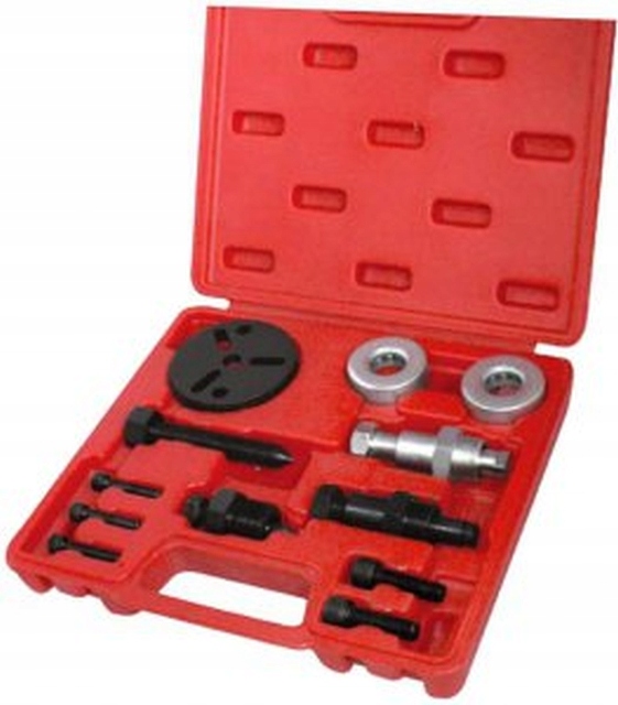 СЪЕМНИК СЦЕПЛЕНИЯ ДЛЯ КОМПРЕССОРА КОНДИЦИОНЕРА, ПРИМЕНЕНИЕ: ДЛЯ СНЯТИЯ СЦЕПЛЕНИЯ В СЛЕДУЮЩИХ КОМПРЕССОРАХ: FS6, C171, 6P И 148, GM R4 И A6, HR6, DAA-6 И V5 И SANDEN SD505, 507, 510, 575, 708 И 709 И ДРУГИЕ, ВОЗМОЖНОСТЬ УСТАНОВКИ ДВУХ ИЛИ ТРЕХ ВИНТОВ ОБЕСПЕЧИВАЕТ РАБОТУ БОЛЬШИНСТВА СЦЕПЛЕНИЯ.