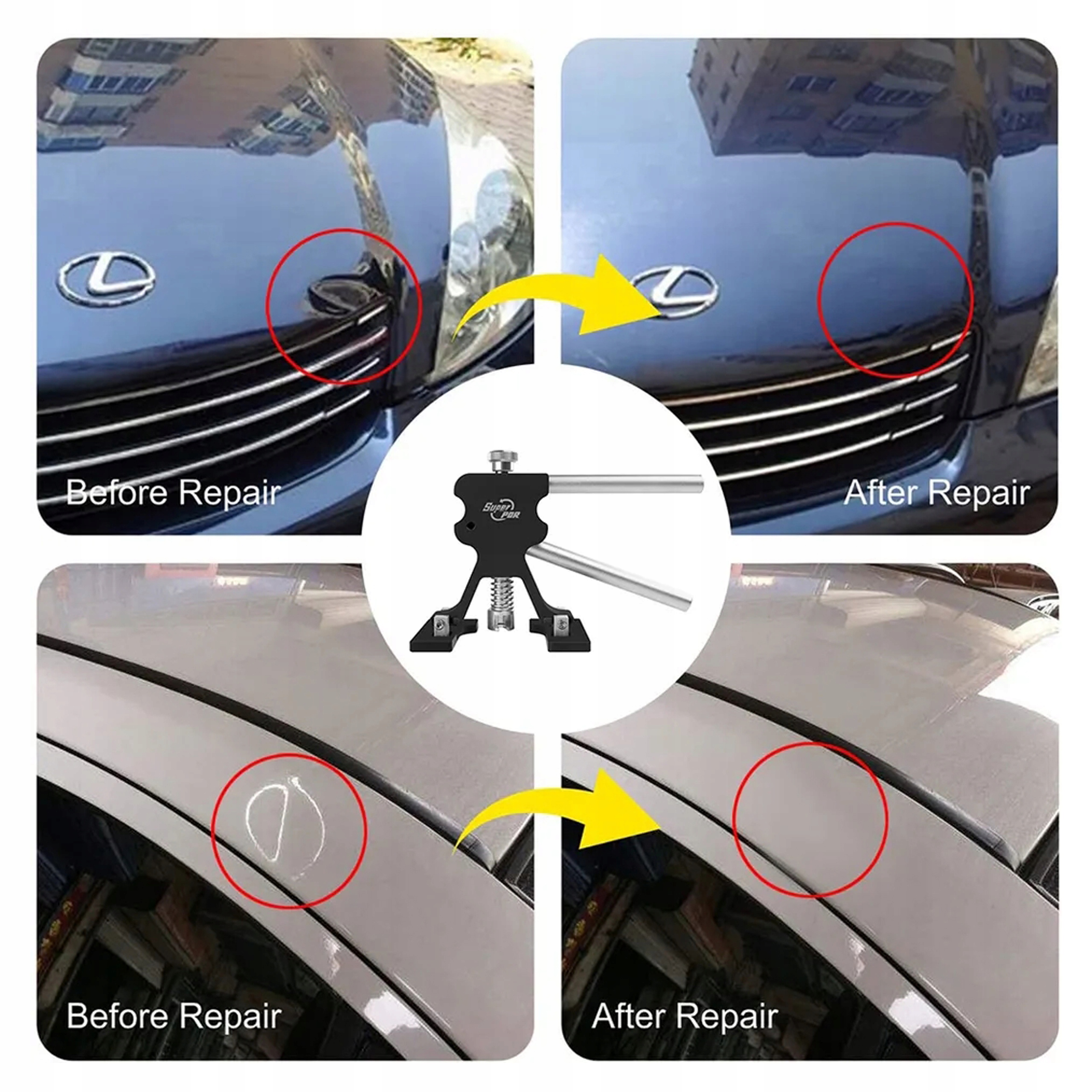 Очень качественный съемник используется для удаления вмятин на кузове автомобиля, вызванных результат: