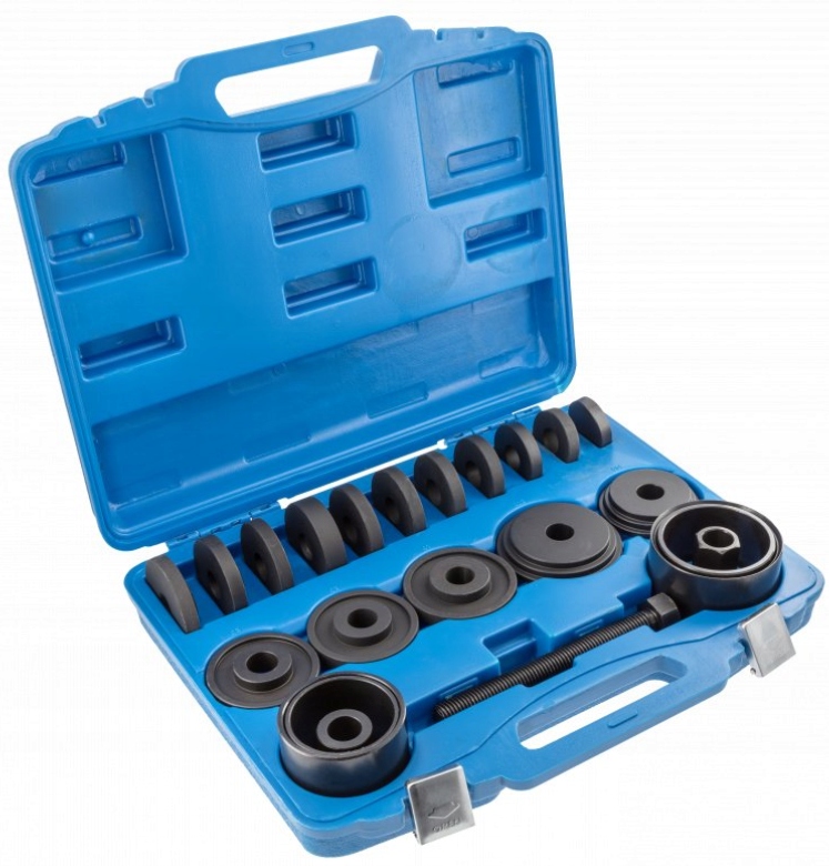 Набор предназначен для снятия и установки подшипников ступиц, шестерен, шкивов, валов и других запрессованных деталей, применяемых в механике. Благодаря своей конструкции отдельные элементы предотвращают повреждение ступицы во время работы. Набор, используемый в профессиональных мастерских и автосервисах. Дополнительным преимуществом является возможность использования гидравлического или механического пресса при демонтаже подшипников, втулок и других вращающихся деталей.