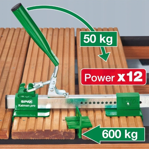 - Натяжной станок SPAX Kaimann Pro предназначен для правильного позиционирования террасных досок с помощью шаблонов (крестовин) перед их креплением к балке.