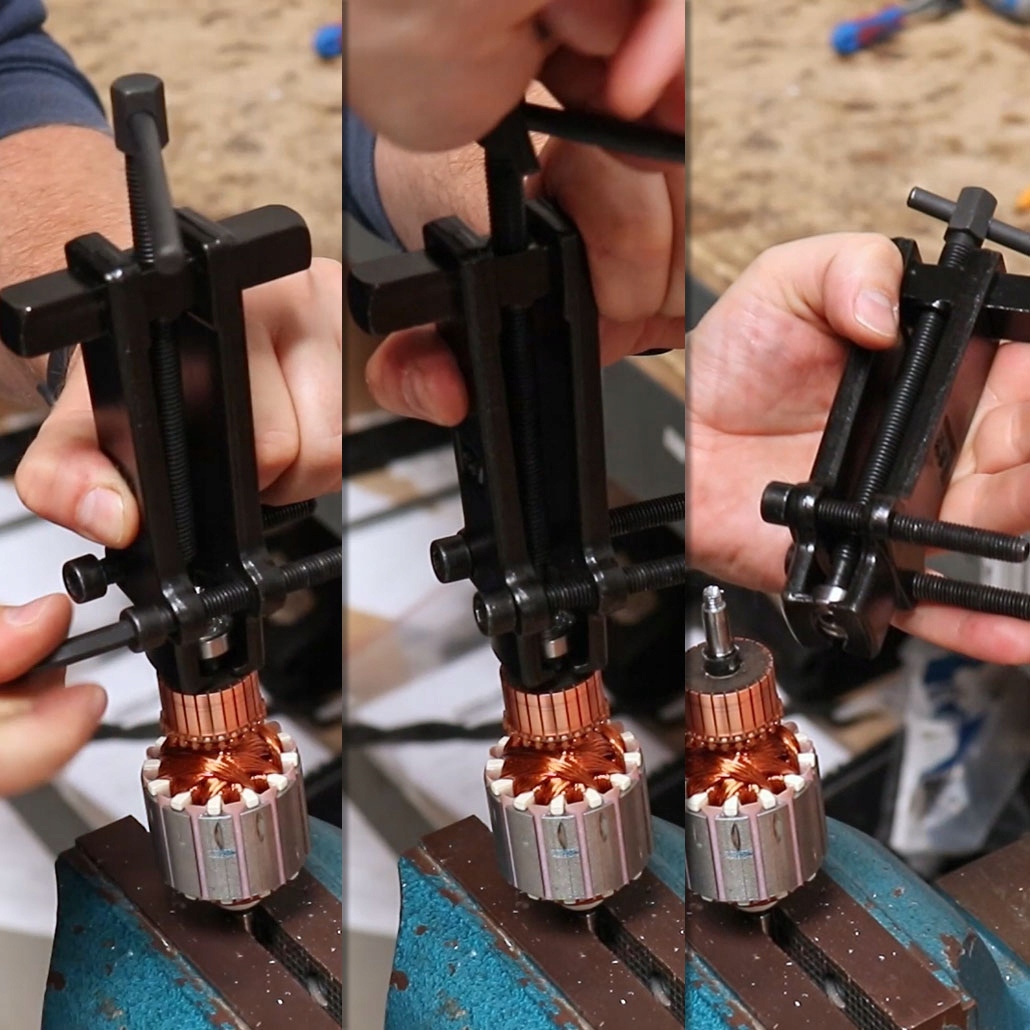 4 съемника подшипников, 2 рычага с винтами 2 дюйма, 3 дюйма, 4 дюйма, 6 дюймов + 1 внутренний съемник подшипников