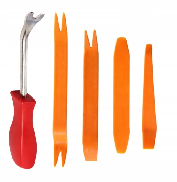 Набор: ложки для снятия обивки и экстрактор обивочных зажимов — необходимые инструменты что позволит оперативно снять или наклонить ее фрагмент без риска повреждения.