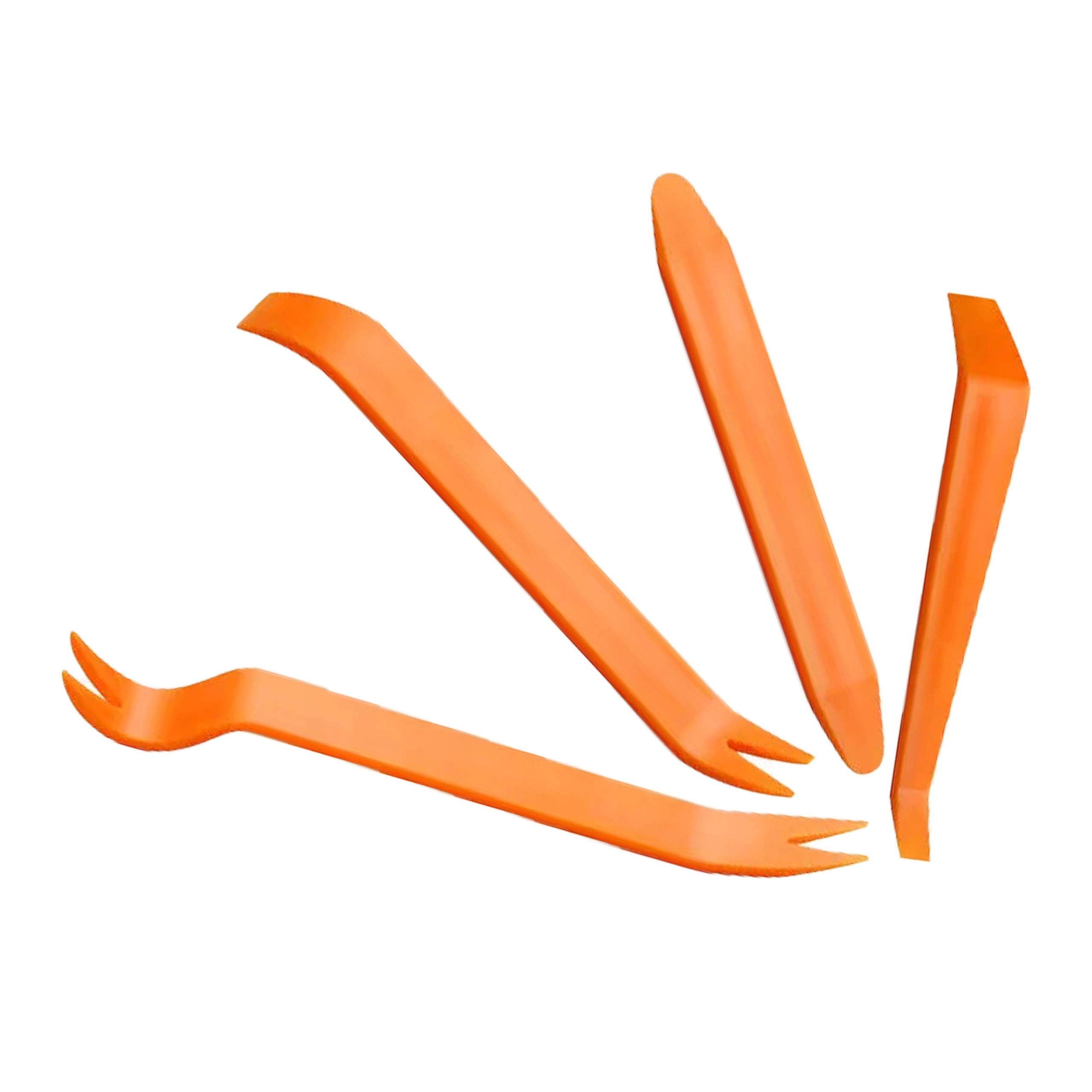 Набор из 4 съемников разной длины и формы для безопасного снятия обивки, молдингов, дверных обивок и т. д. Особенно рекомендуется для работ в автосервисах, кузовных работах, покраске и автодетализации.