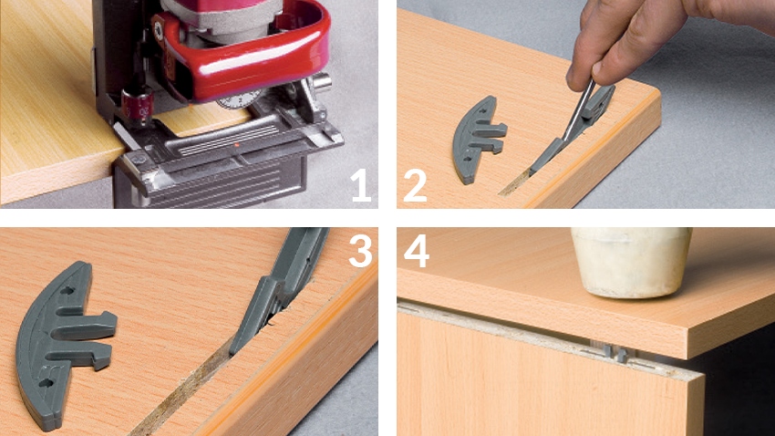 Важно! Для изготовления гнезд понадобится обычный станок для ламелей с фрезой 4 мм — можно использовать, например, фрезерные станки Classic X или Zeta P2 Lamello. Поместите разъем в то же гнездо, что и планки № 20.