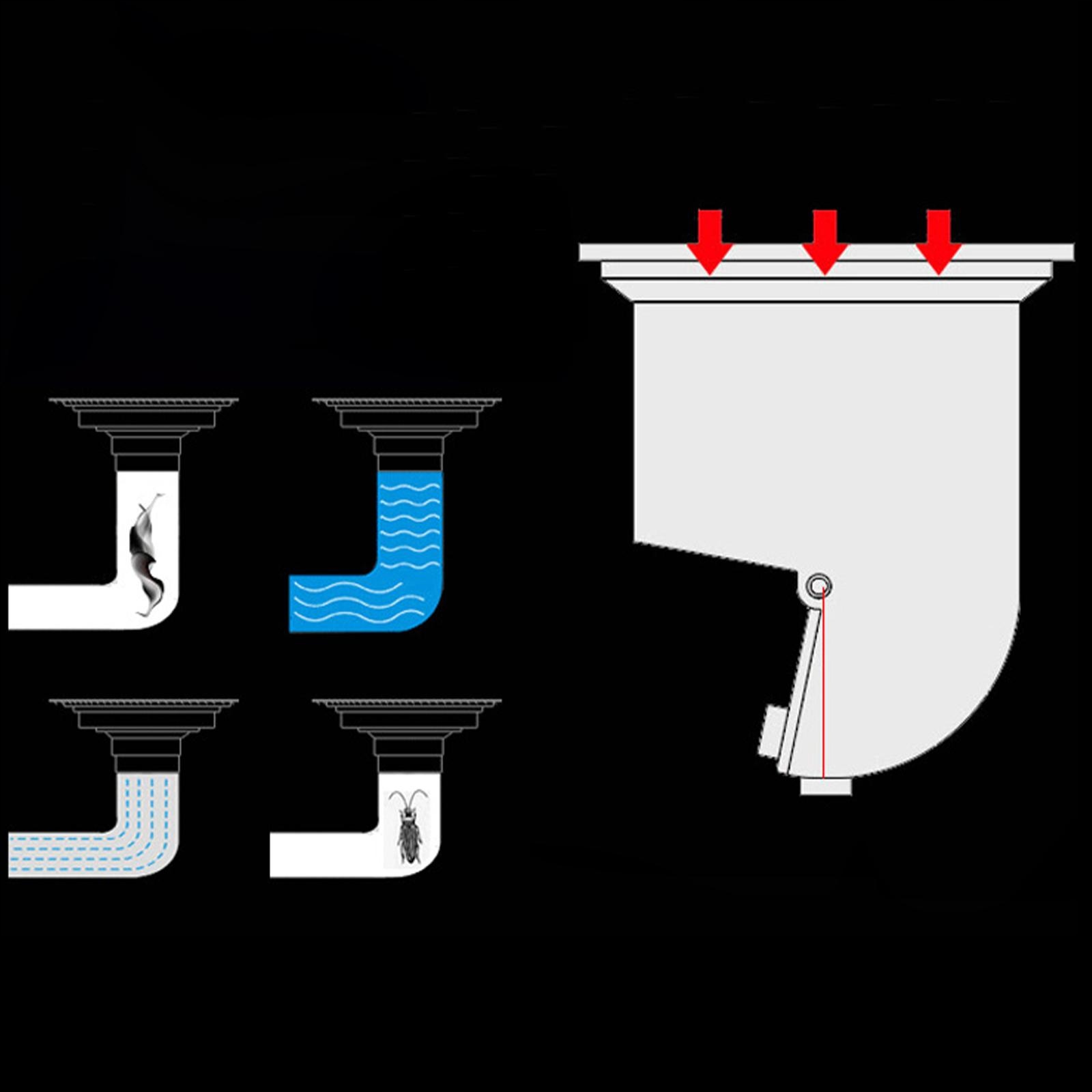 Материал: трап для пола из литой латуни, утолщенный материал, без деформации, без трещин, без разрушения, с большим смещением, защита от перелива, устойчивость к коррозии.