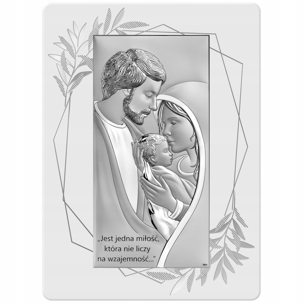 Серебряная картина с изображением Святого Семейства является изображением соединения (причастия) Святых Лиц. В то же время этот образ выражает единение, любовь, жизнь супружеской пары и христианской семьи, стремящейся к святости и созданию общения в собственном браке и семье, что делает его прекрасным подарком на свадьбу или рождение ребенка. ребенок.