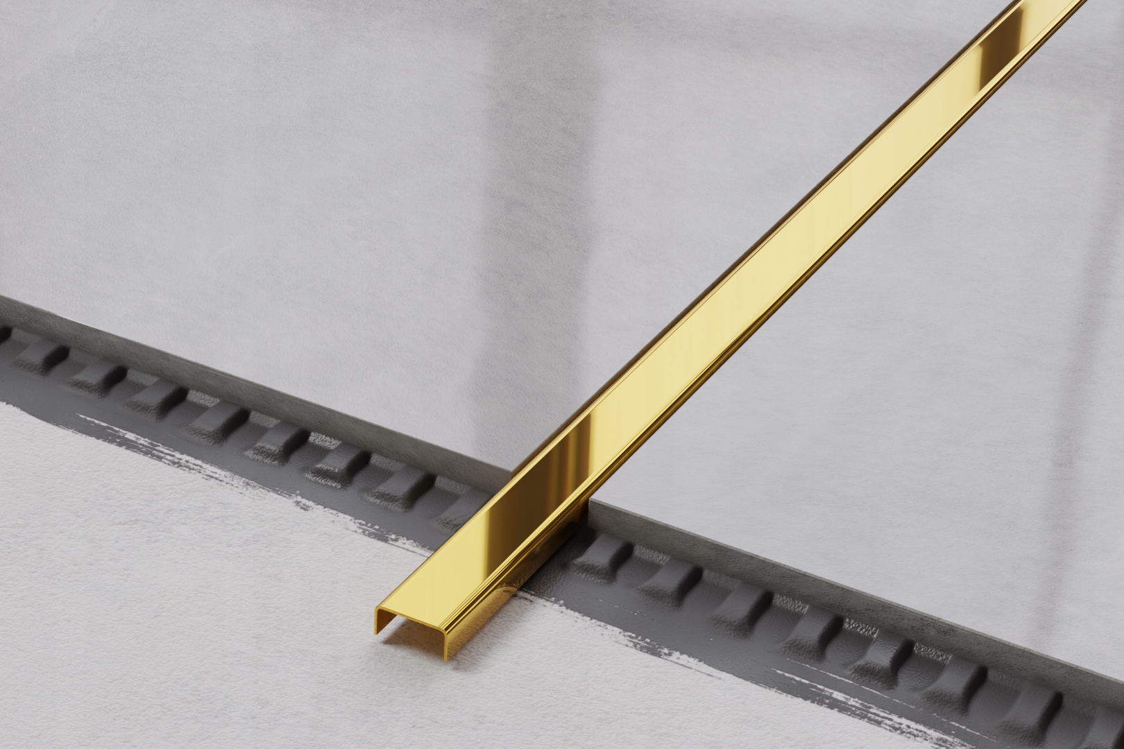 • Профили устанавливаются с помощью монтажного клея или путем заливки их в клей для плитки.